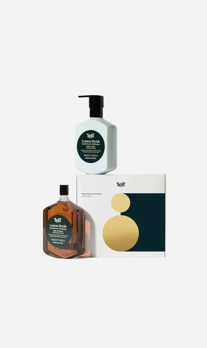 The Leif Body Double is one smart kit containing two paired products. This couple heroes Lemon Myrtle, a national treasure containing the world’s highest source of citral. Bring vitality to your day with the citrusy body cleanser and follow with a lotion to hydrate and stimulate. The products come beautifully boxed in limited edition packaging (different from what is pictured) and packed in a reusable drawstring cotton bag.