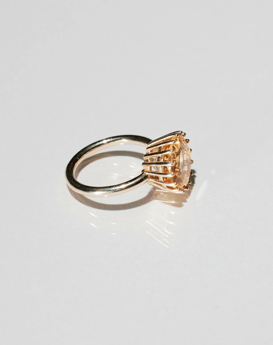 A statement jewellery piece, special in its character but timeless in its aesthetic, the Geneva Cocktail Ring by Meadowlark has an oversized, brilliant round stone held on a bold and proud multi-prong setting. An eternally glamorous mood for all the occasions that call for it.