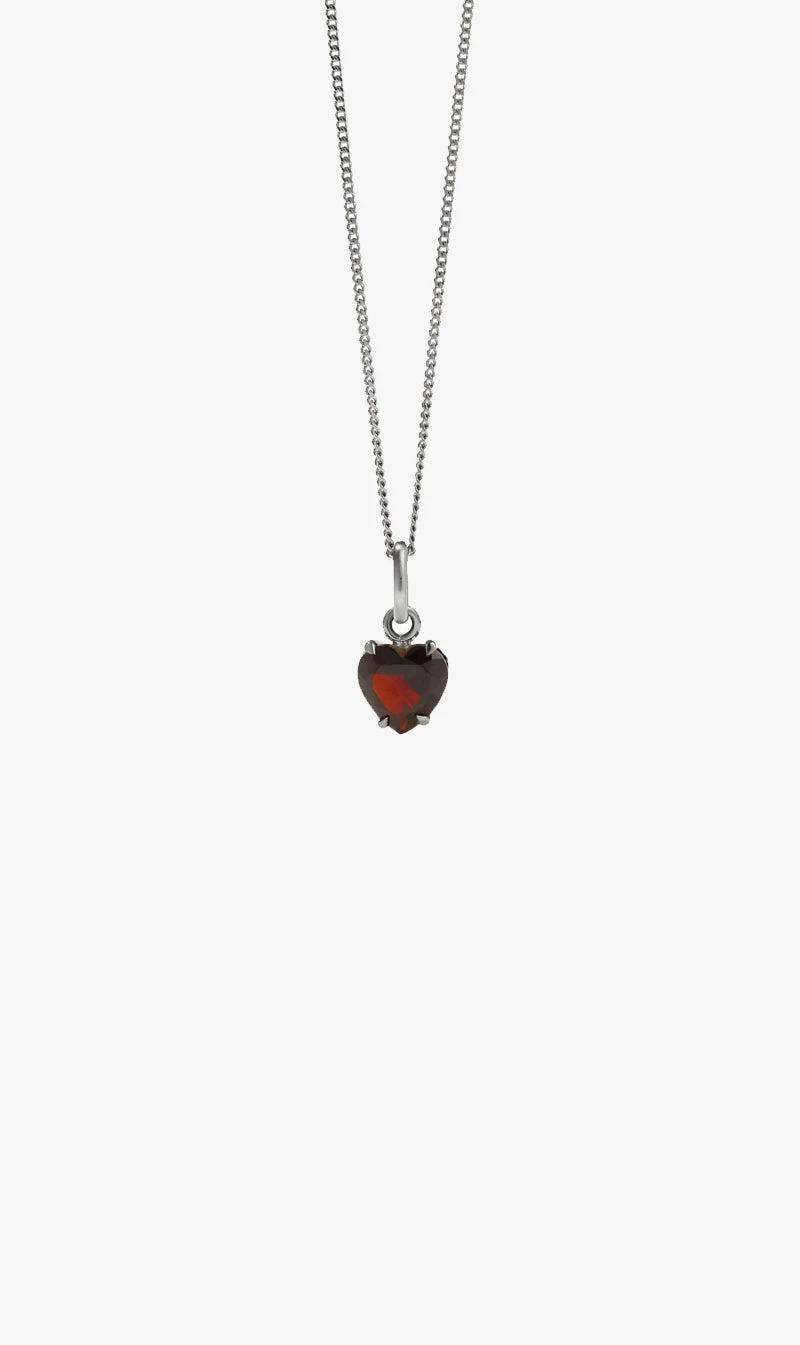 The Meadowlark Heart Jewel Necklace in Silver. A pillowy 7mm heart-shaped stone, hugged by a simple claw setting and suspended from a fine and delicate chain. Pared-back but bursting forth – an everyday ode to loving and being loved.Â
