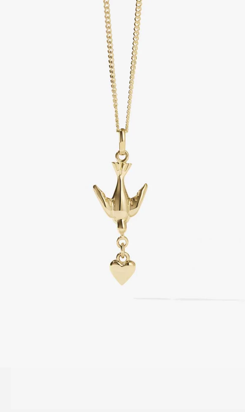 The Meadowlark Love Dove Necklace 50cm in Gold Plated is a symbol of peace, hope, and freedom. Crafted using 23k plated gold this small and intricately-sculpted dove charm flies forever with a love heart in its beak. Suspended from a delicate 50cm chain; a sweet piece for the unbreakable dreamer, lover, and optimist.