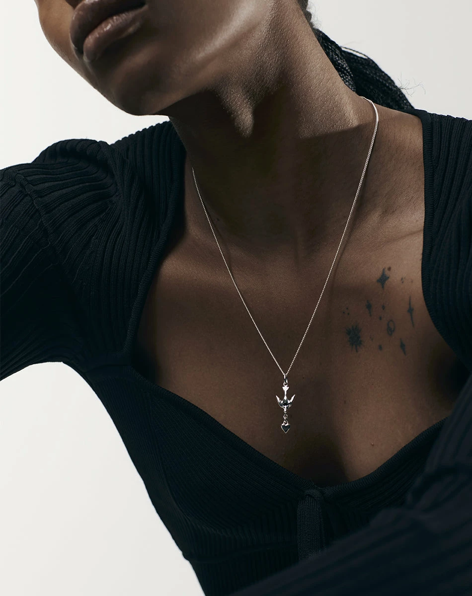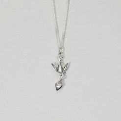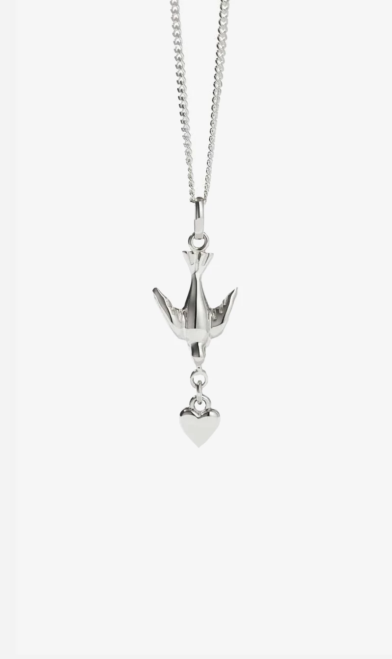 The Meadowlark Love Dove Necklace 50cm in Silver is a symbol of peace, hope, and freedom. Crafted using sterling silver, this small and intricately-sculpted dove charm flies forever with a love heart in its beak. Suspended from a delicate 50cm chain; a sweet piece for the unbreakable dreamer, lover, and optimist.