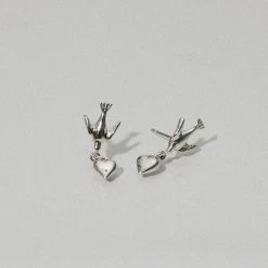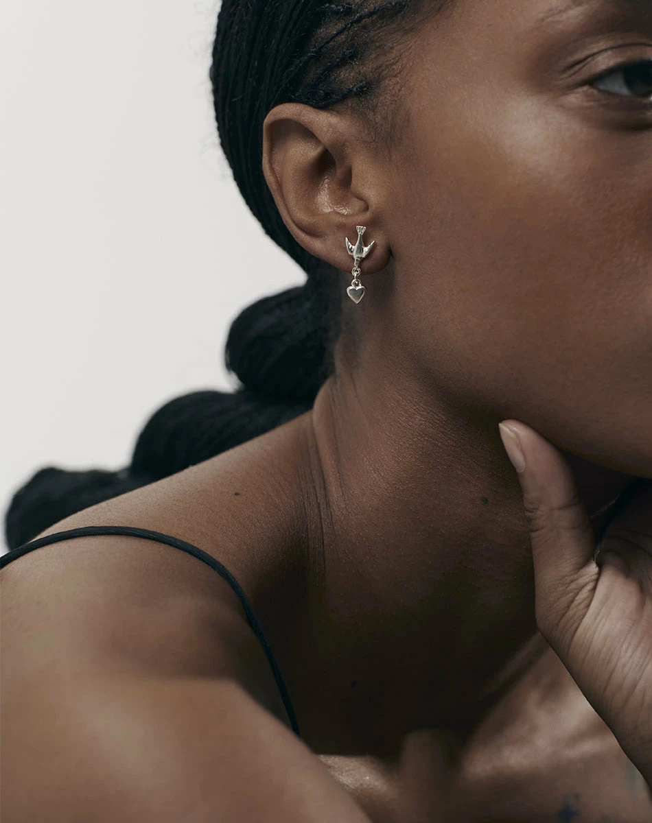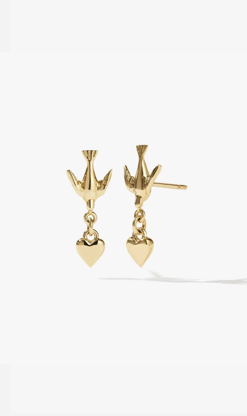 The Meadowlark Love Dove Studs in Gold Plated are a classic edition to elevate your look. Symbolizing peace, hope, and freedom, these intricately-sculpted dove studs stay fixed to the ear while love hearts dangle from their beaks, moving gently as you do. A sweet piece for the unbreakable dreamer, lover, and optimist. Thoughtfully crafted with 23k plated gold