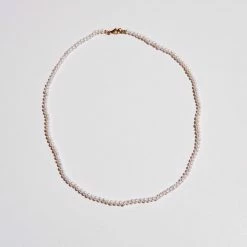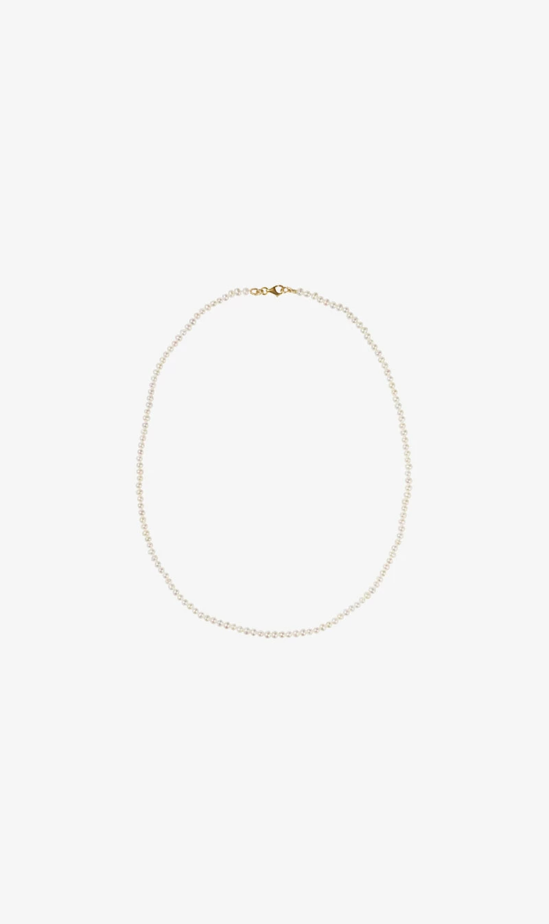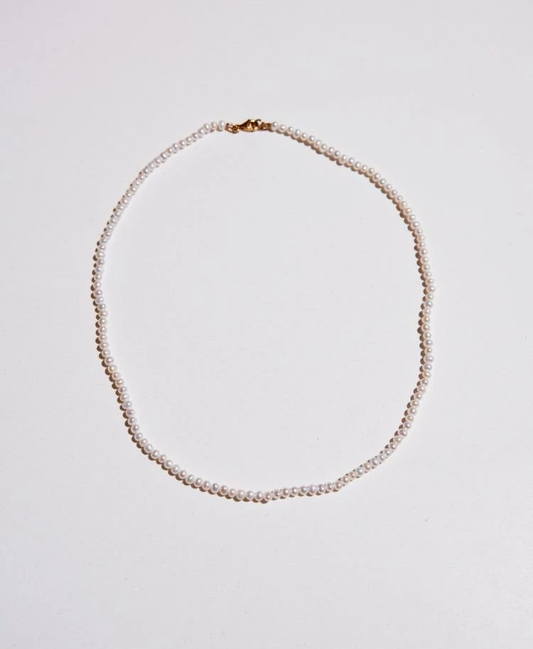 Tiny freshwater pearls hand-strung on silk thread and finished with a lobster clasp. An ode to the ocean, designed to hang coolly and elegantly.