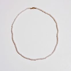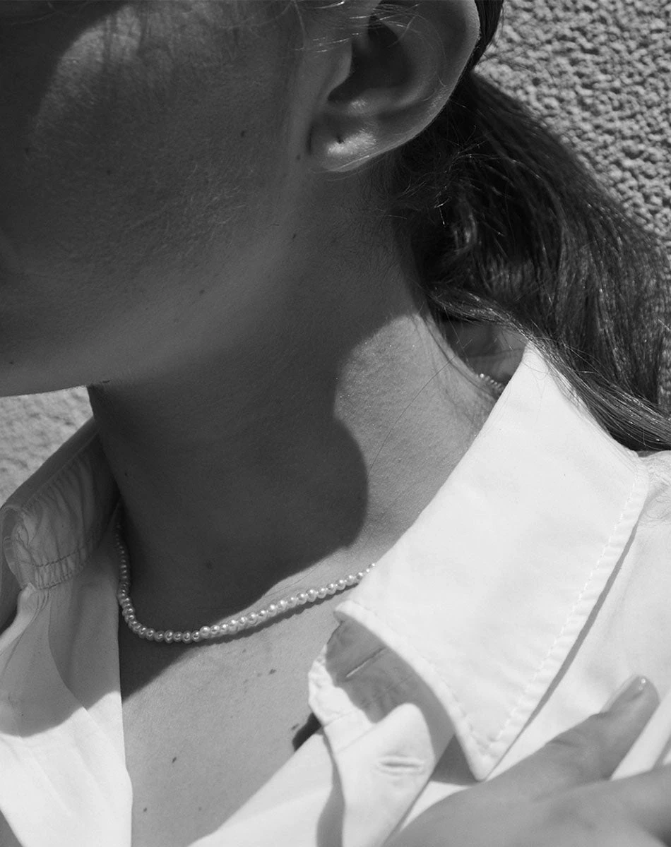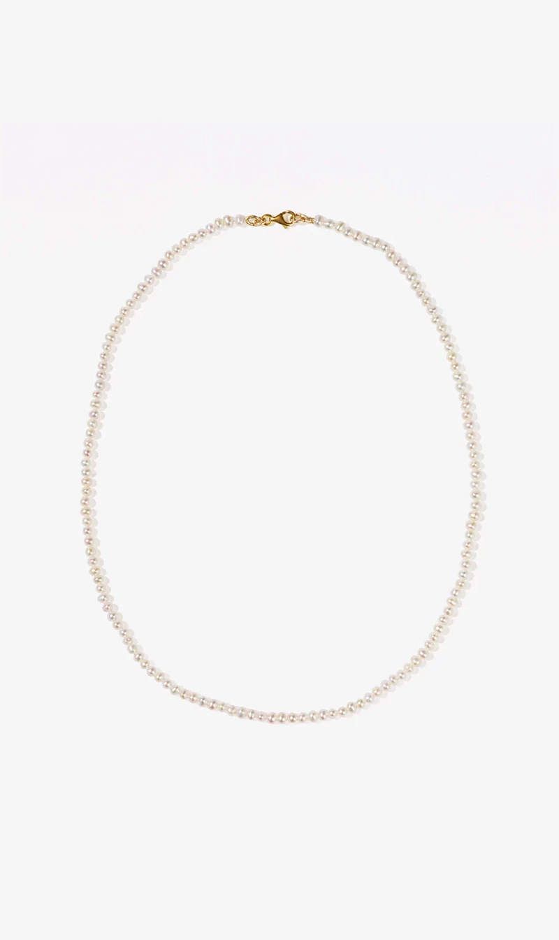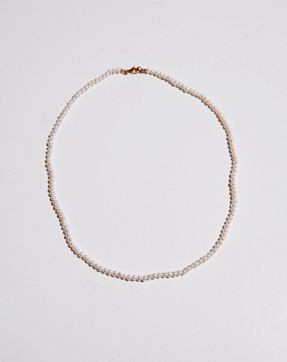 Simple and timeless, the Micro Pearl Necklace by Meadowlark features tiny freshwater pearls hand-strung on silk thread and finished with a lobster clasp. An ode to the ocean, designed to hang coolly and elegantly, pair this with a simple white shirt for subtle glamour.Â
