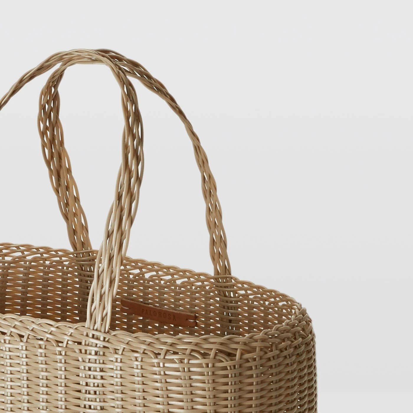 The Palorosa Lace Small tote bag is a chic, sophisticated bag, and the perfect accessory for your day-to-night outfits. A small top handle tote, this bag is entirely handwoven in Guatemala, incorporating recycled plastic; this material makes the product light, minimalist and extremely durable. Pair with any summer outfit, for truly go-anywhere style.