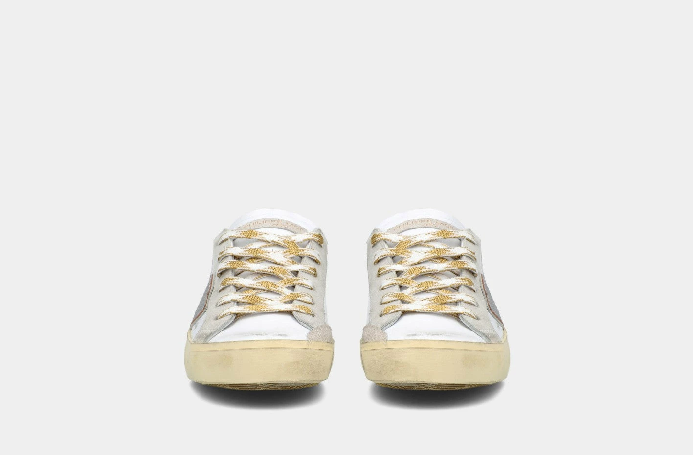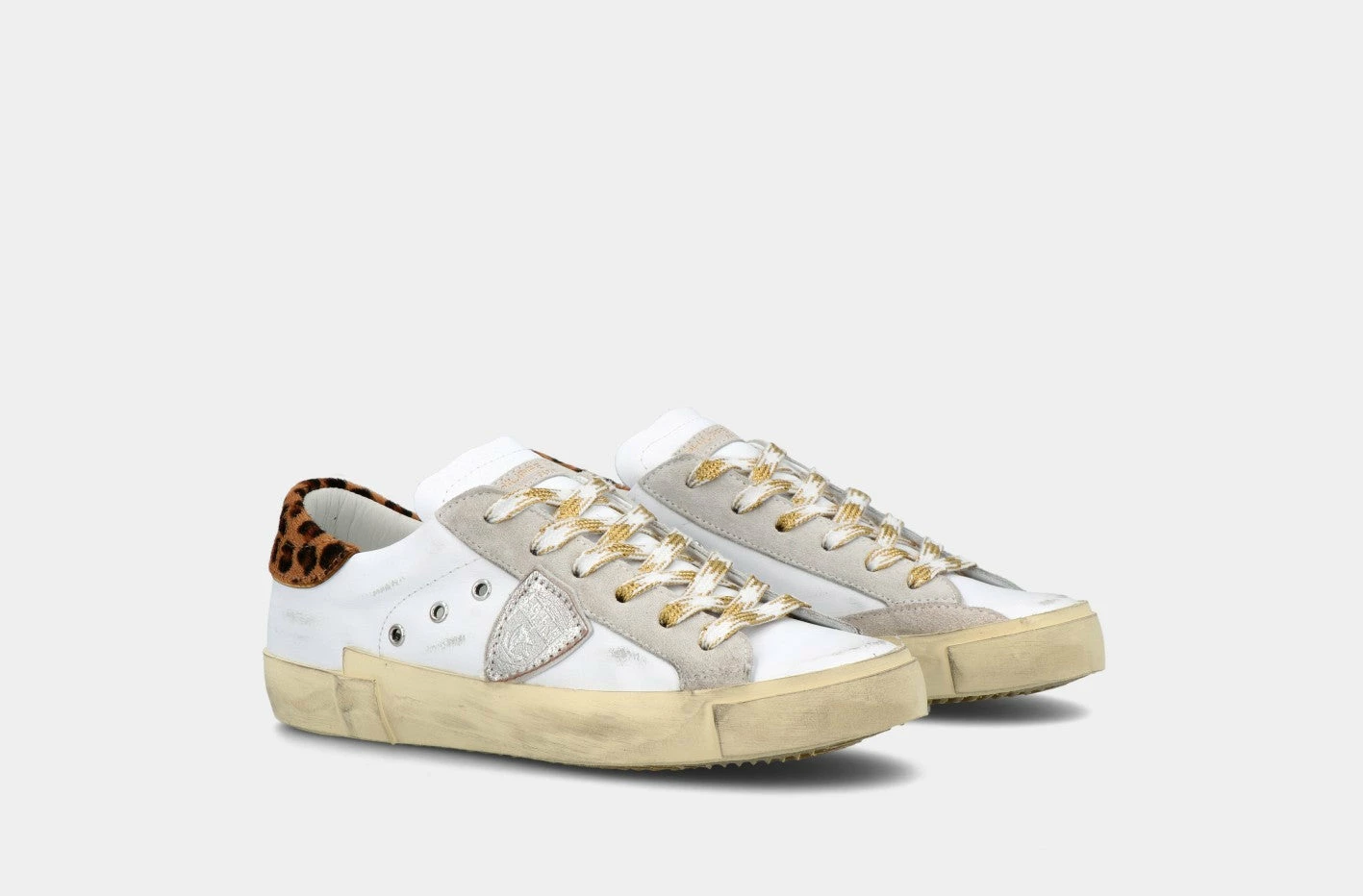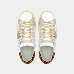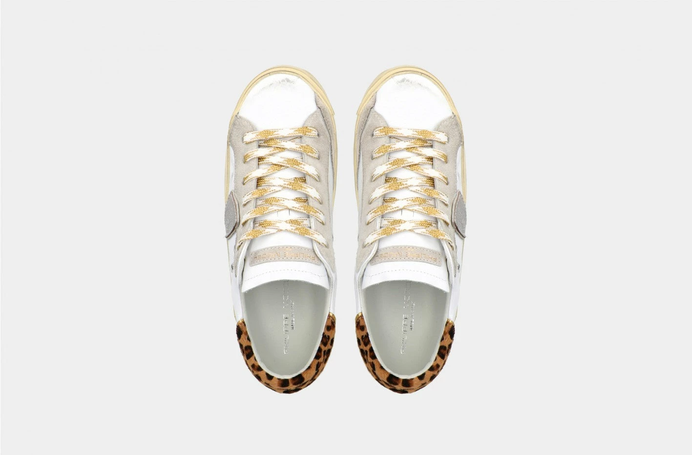 The idea of ‘lived-in’ as a synonym for craftsmanship can be seen clearly in the Philippe Model PRSX, thanks to unique, patented foxing tape that creates a purposefully imperfect sole. The shield on the side of the shoe features the coat of arms of the City of Paris, where Philippe Model launched its brand. The upper is made from calfskin, with mirrored fabric, snakeskin print calfskin and laminated leather inserts. The laces are silver with a lurex thread. The sole, 2.5 cm high, is made from vintage effect brushed rubber. Philippe Model Paris uses Italian materials and leather. We call it ‘made with care in Italy’.