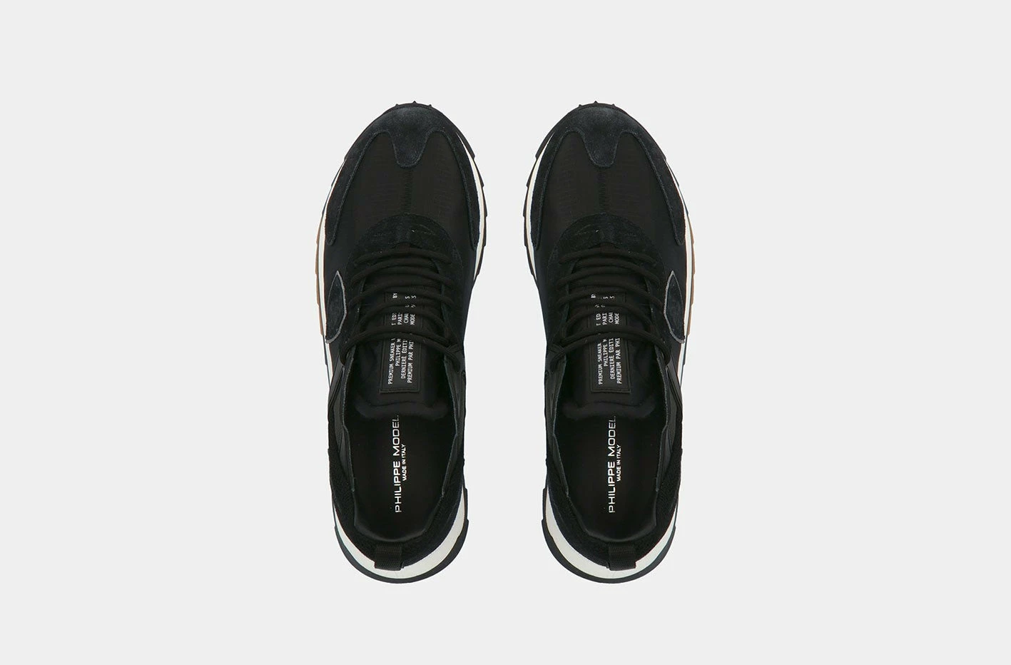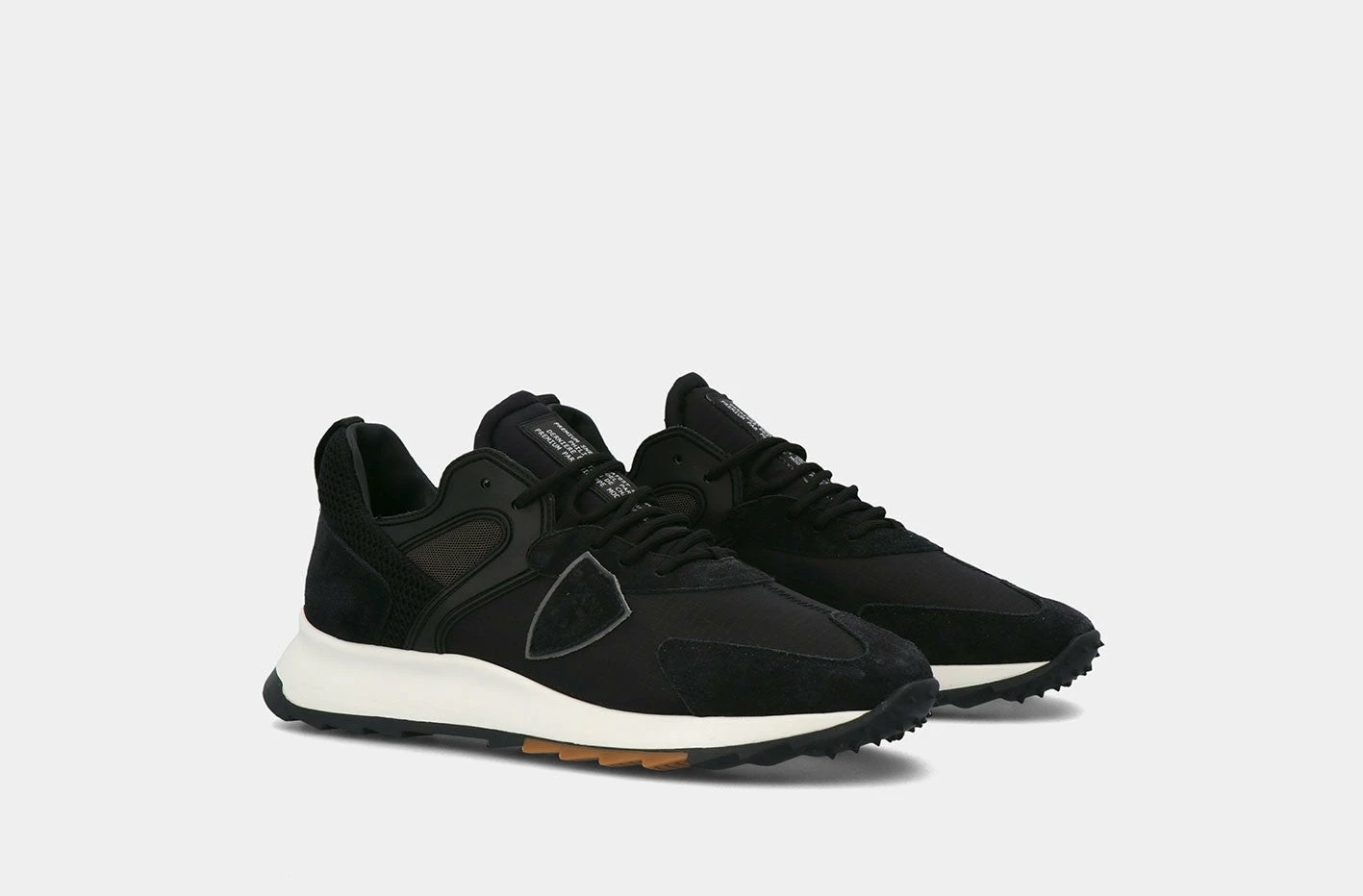 The Philippe Model Royale is the sporty-casual sneaker that takes its inspiration from running, never overlooking the brand’s Parisian soul. The upper is made from suede and ripstop nylon fabric and features reflective fabric and nylon mesh inserts, along with the functional detail of the rubber-coated eyestay. The laces are black. Elasticity and absolute durability are ensured by the lightweight thermoplastic sole that is 3.5 cm high. Philippe Model Paris uses Italian materials and leather, they call it ‘made with care in Italy’.