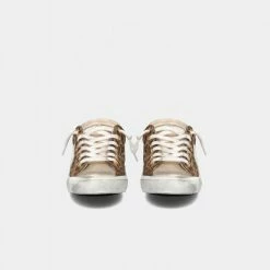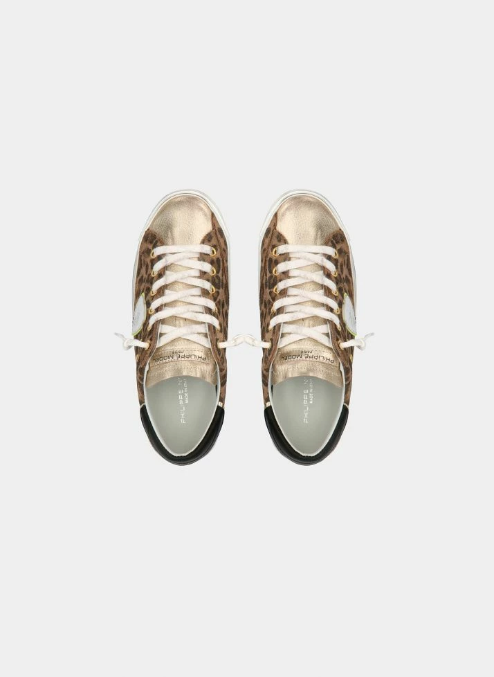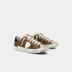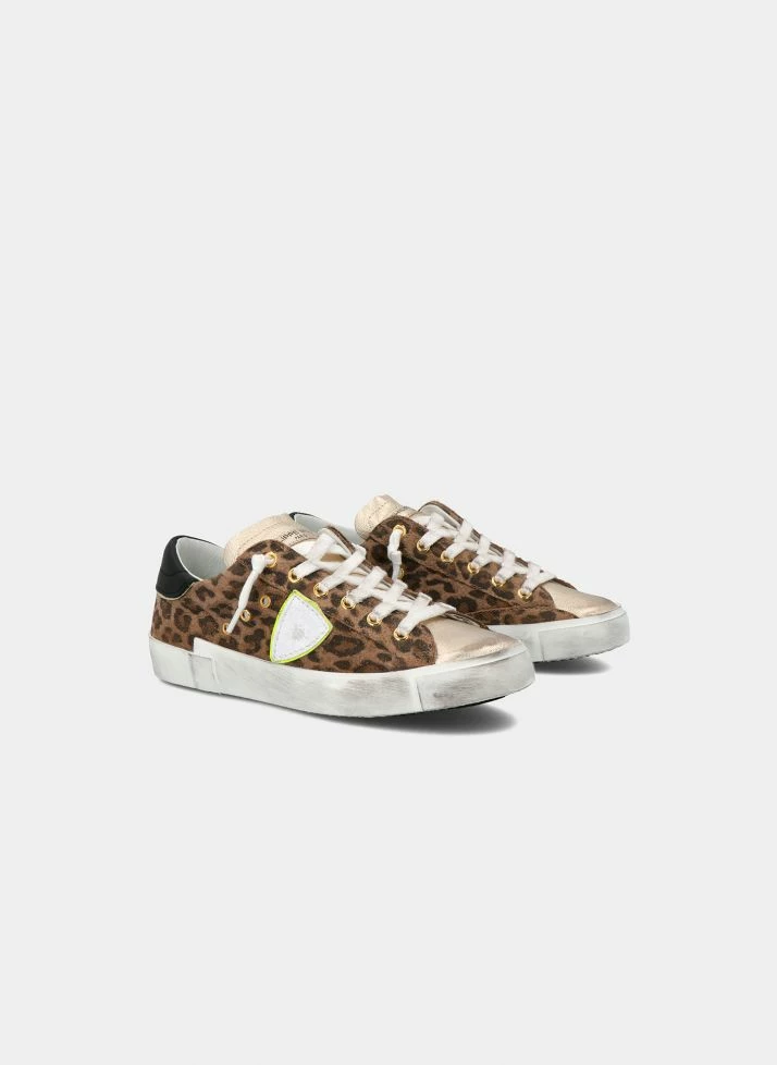 The concept of worn-out as a synonym for craftsmanship finds its highest expression in PRSX, owing to the intentionally imperfect sole banding, which was therefore patented by the brand. The PRSX women’s animal-print suede model featuring calfskin leather and metallic-effect leather details combines a casual attitude with uniquely refined materials.