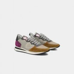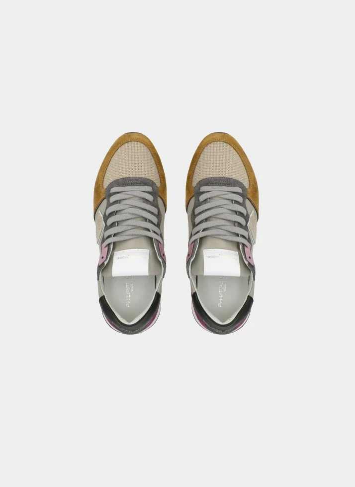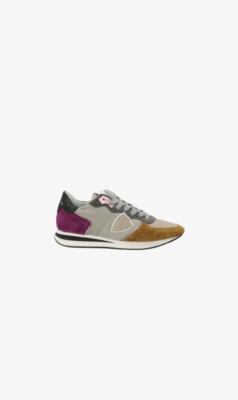 Philippe Model’s iconic model, TRPX boasts a sinuous sole in line with the latest running shoe trends, for a timeless sporty-chic style. The women’s model is made of calfskin leather and suede, featuring nylon fabric and nylon mesh inserts and is embellished with metallic leather inserts. The sole, made of microporous material, provides lightness and comfort.