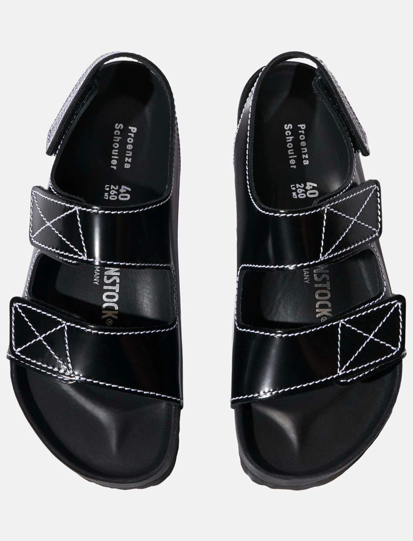 The Birkenstock X Proenza Schouler Milano Sandals in Black with White top stitchingÂ