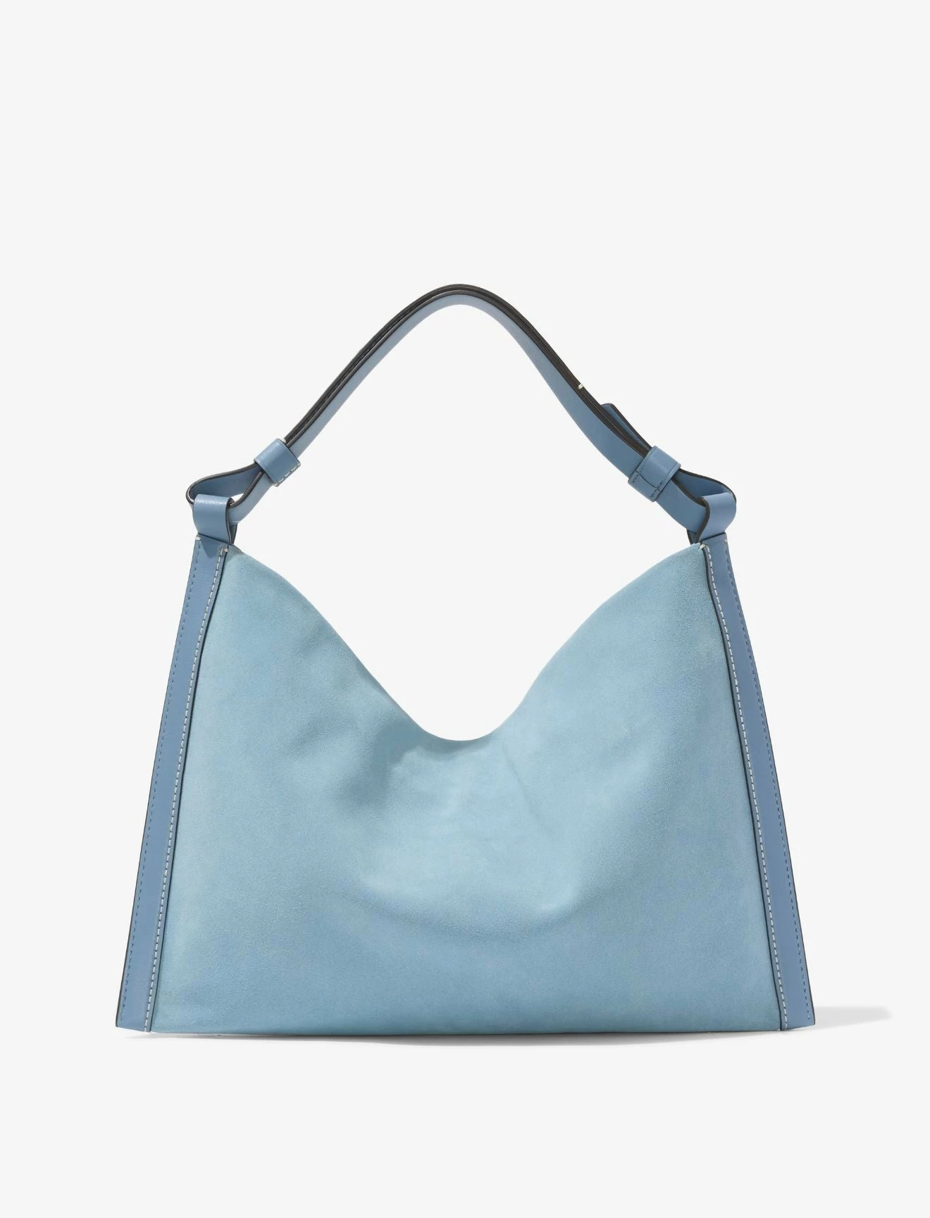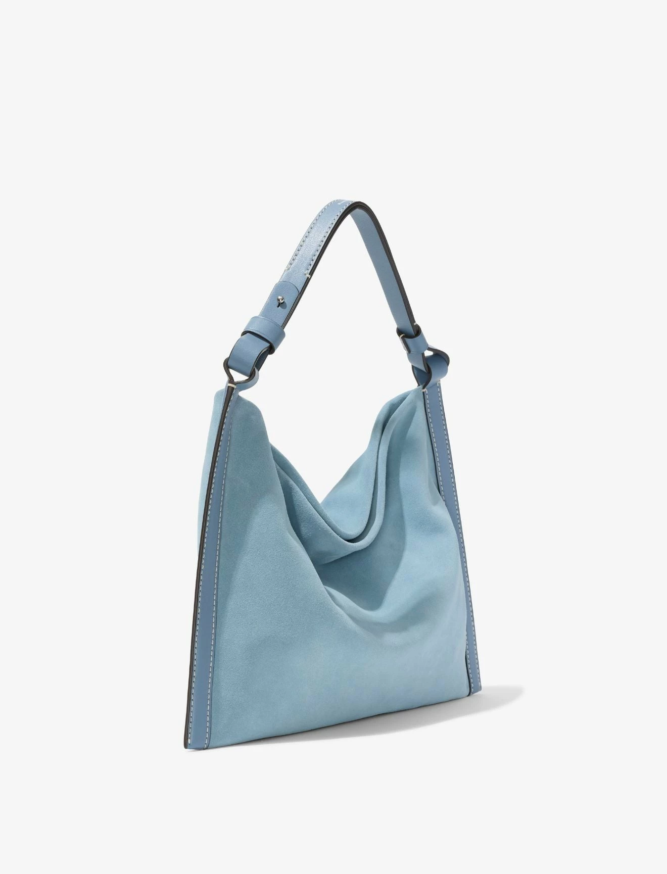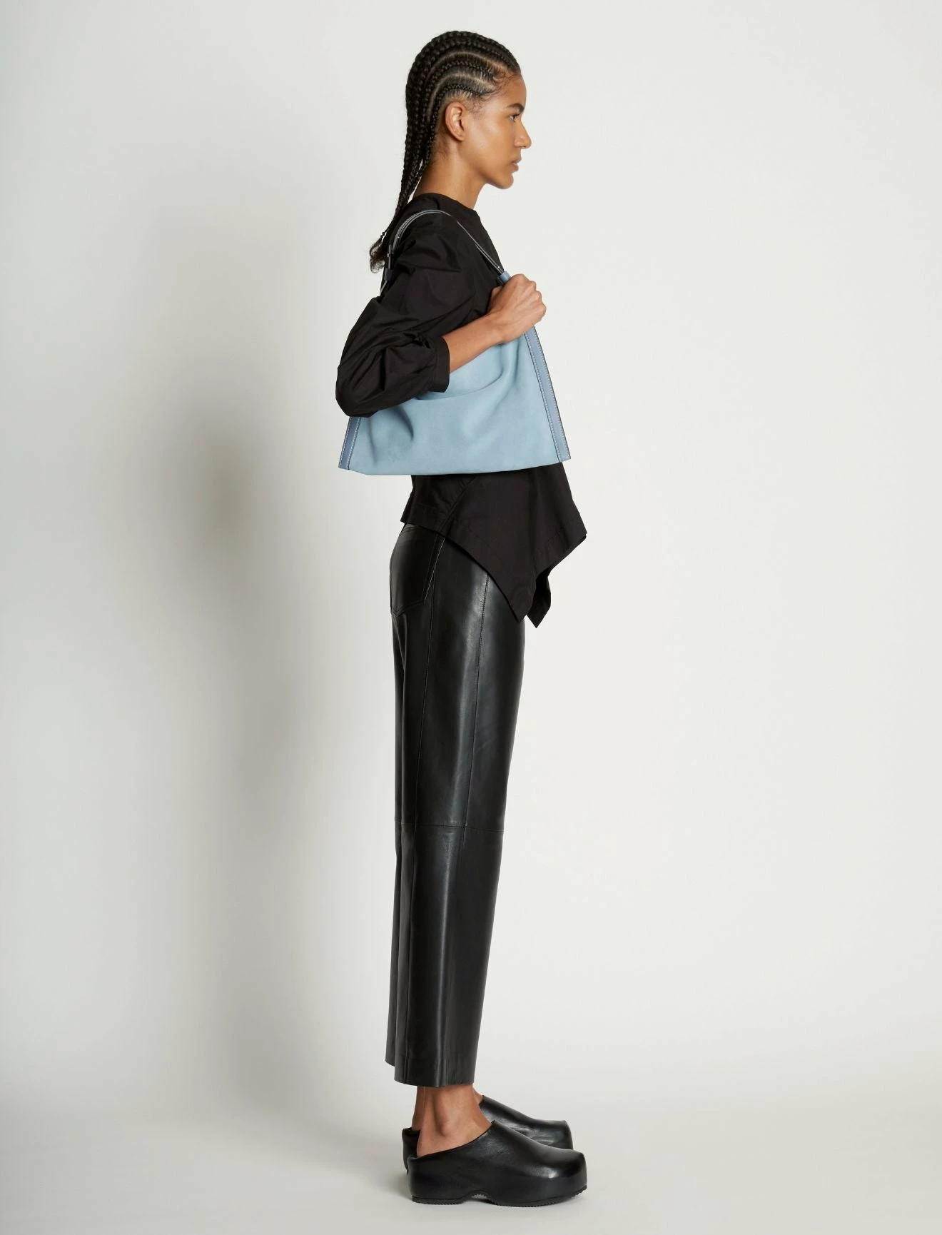 The Minetta Bag by Proenza Schouler in yellow is crafted in soft suede to a slouchy, rectangular silhouette. Featuring a tonal leather top handle and side trims with contrast white topstitching, pair this with your off-duty outfit of blue denim, white tank and blazer for casual perfection.