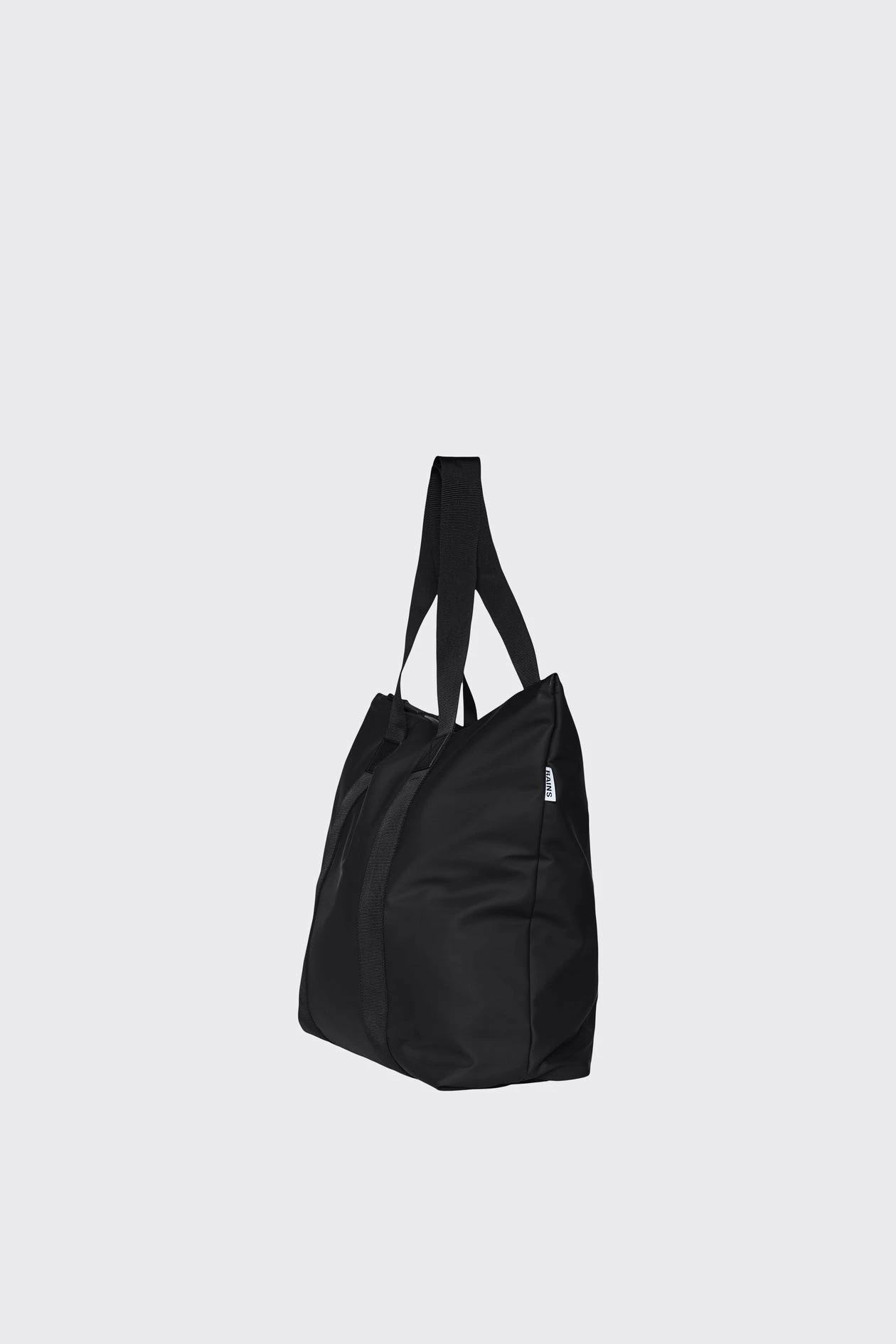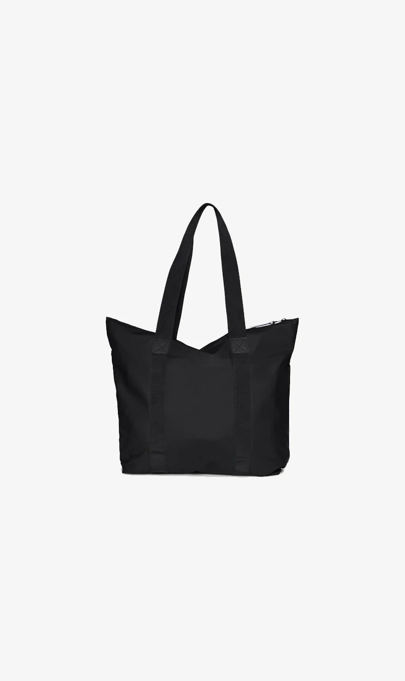 The RAINS Tote Bag Rush. The Tote Bag Rush is a scaled-down version of the Rains classic, Tote Bag. The pared-back silhouette features one main compartment and an inner pocket. The look is finished with a coated zip and wrap-under webbing handles, delivering an easy-to-wear staple, perfect for light commutes.