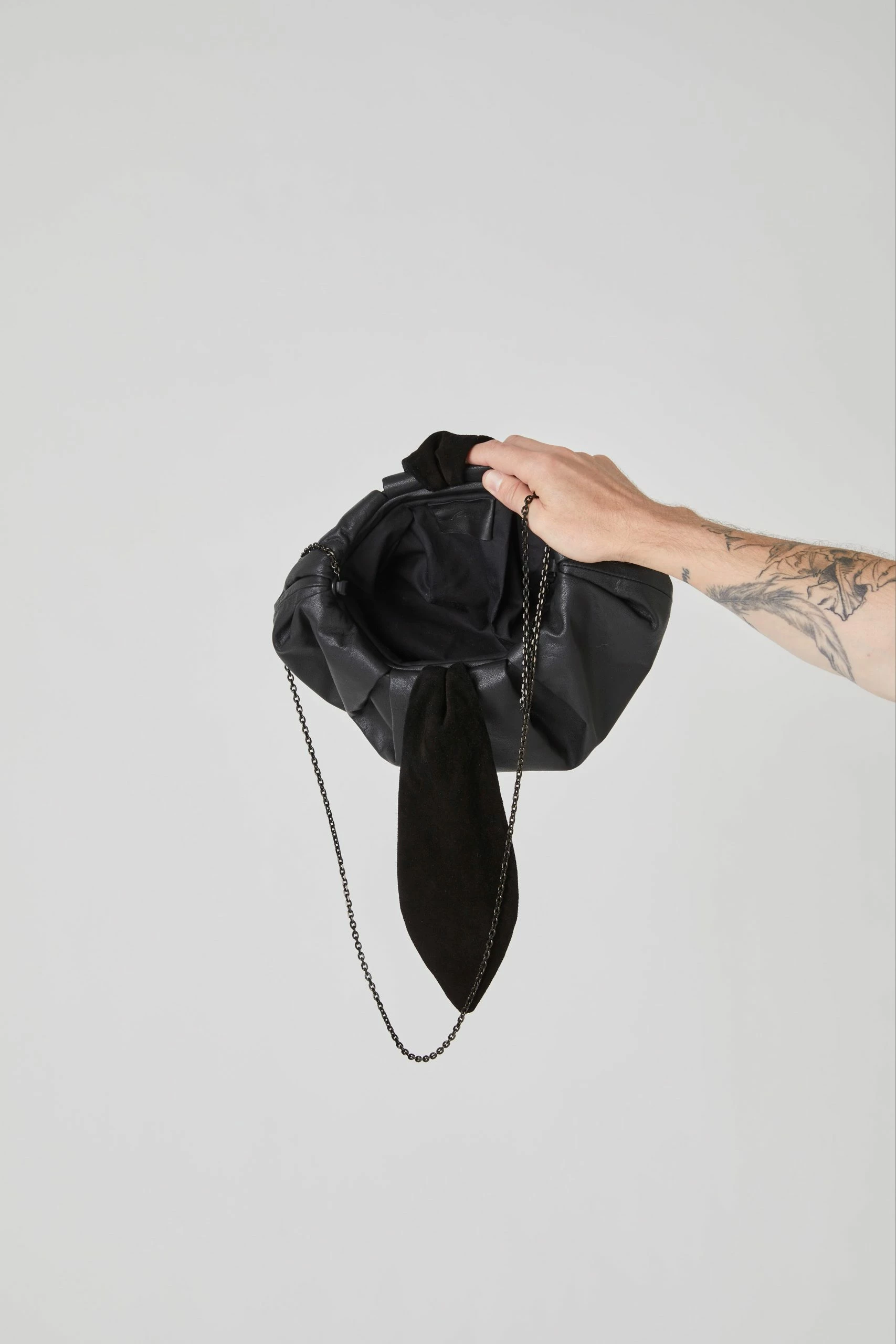 The Daily Bow Bag by Rory William Docherty is an understated design with a fuss-free utility featuring gently folded leather with a layer of wool wadding to create a soft pillow like volume.