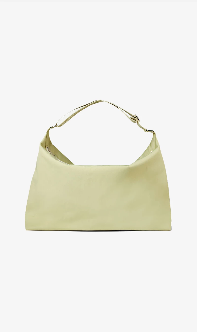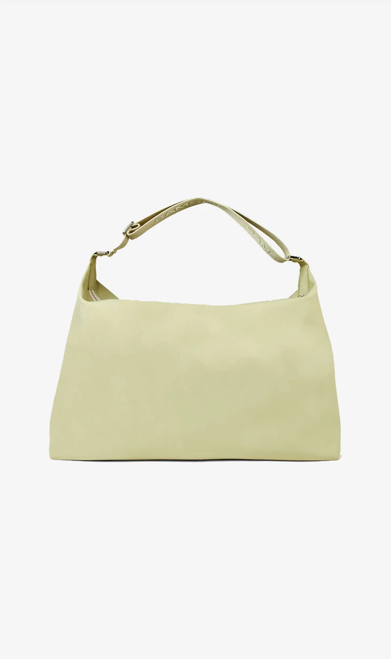 The Samsoe Samsoe Lara Bag in Sage Green is the perfect large shoulder bag with a Samsoe Samsoe branded webbing shoulder strap. Zip fastening top edge, internal zipped pocket. Padded and quilted lining. Cotton, polyester and nylon blend fabric.