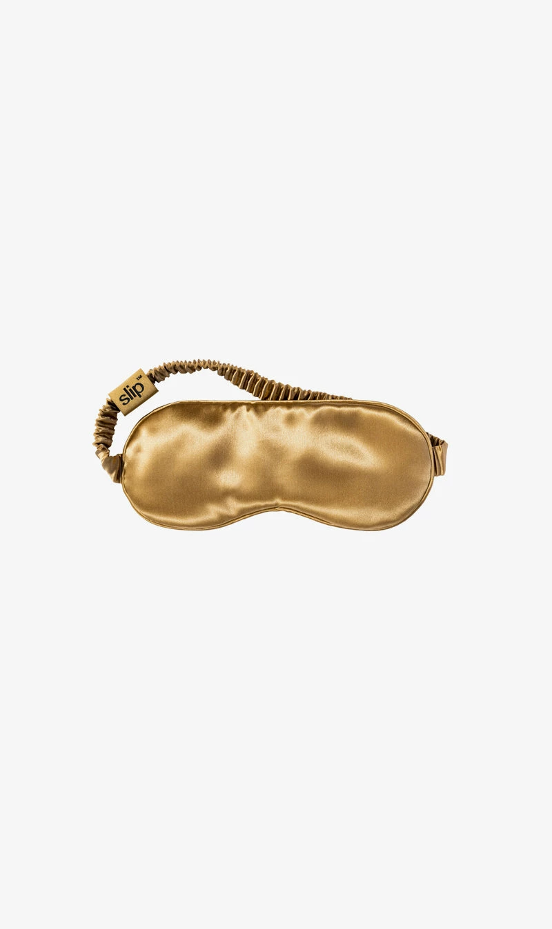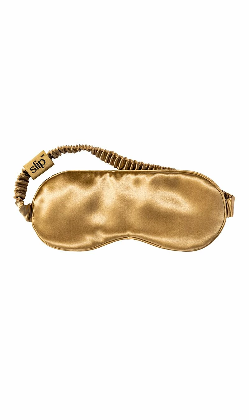 The Slip Pure Silk Sleep Mask in Gold. Slipsilkâ„¢ is specially-commissioned and made to exacting standards, developed and refined over ten years to provide the ultimate combination of shine, thickness, softness and durability. Using the the highest grade (6A) long fibre mulberry silk, with a thickness of 22 momme and enforce the strictest quality guidelines, including non-toxic dyes.