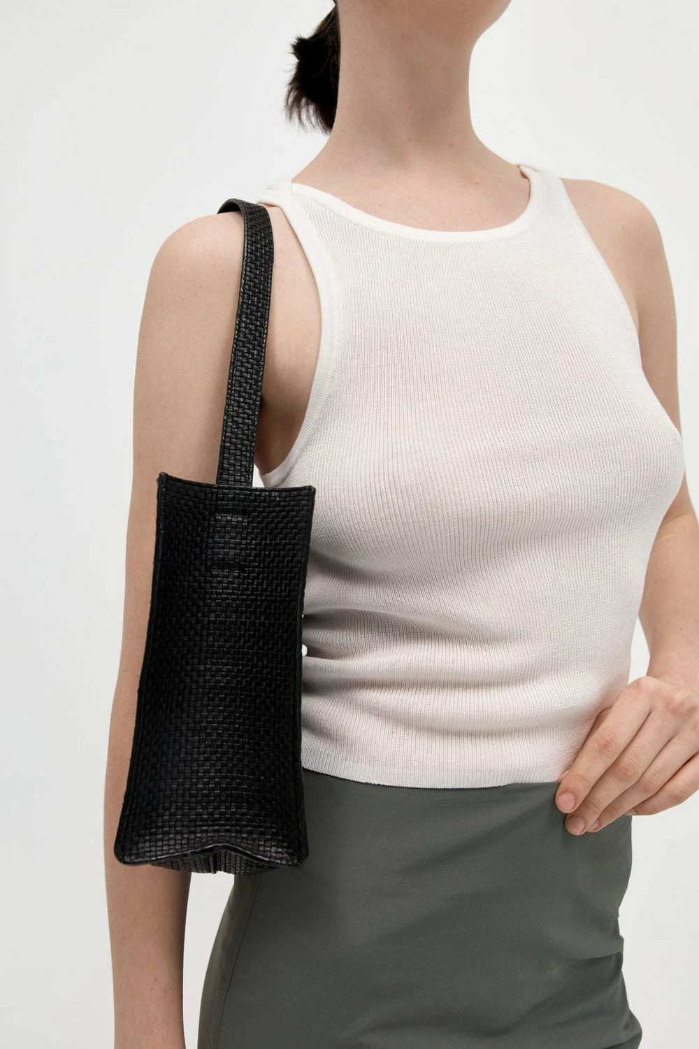 Boasting all the signs of St Agni’s artisan craftsmanship, the Woven Minimal Mini Tote is hand-woven from vegetable-dyed leather. Featuring a small minimal, rectangular silhouette, single woven strap, magnet closure and suede lining The Woven Minimal Mini Tote has been streamlined to carry everyday essentials.