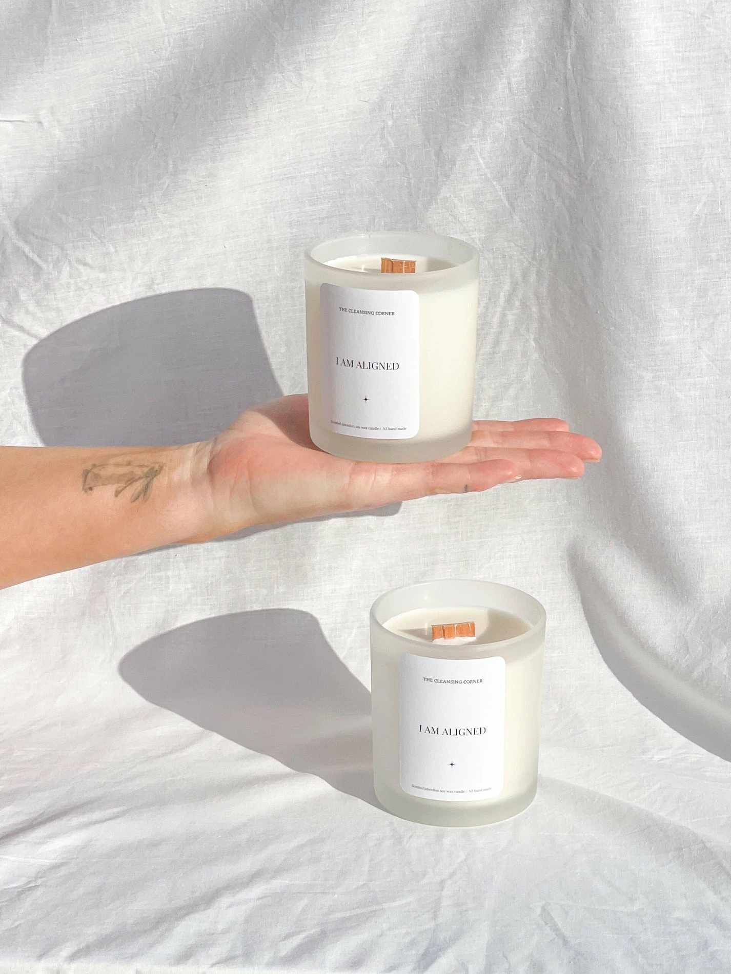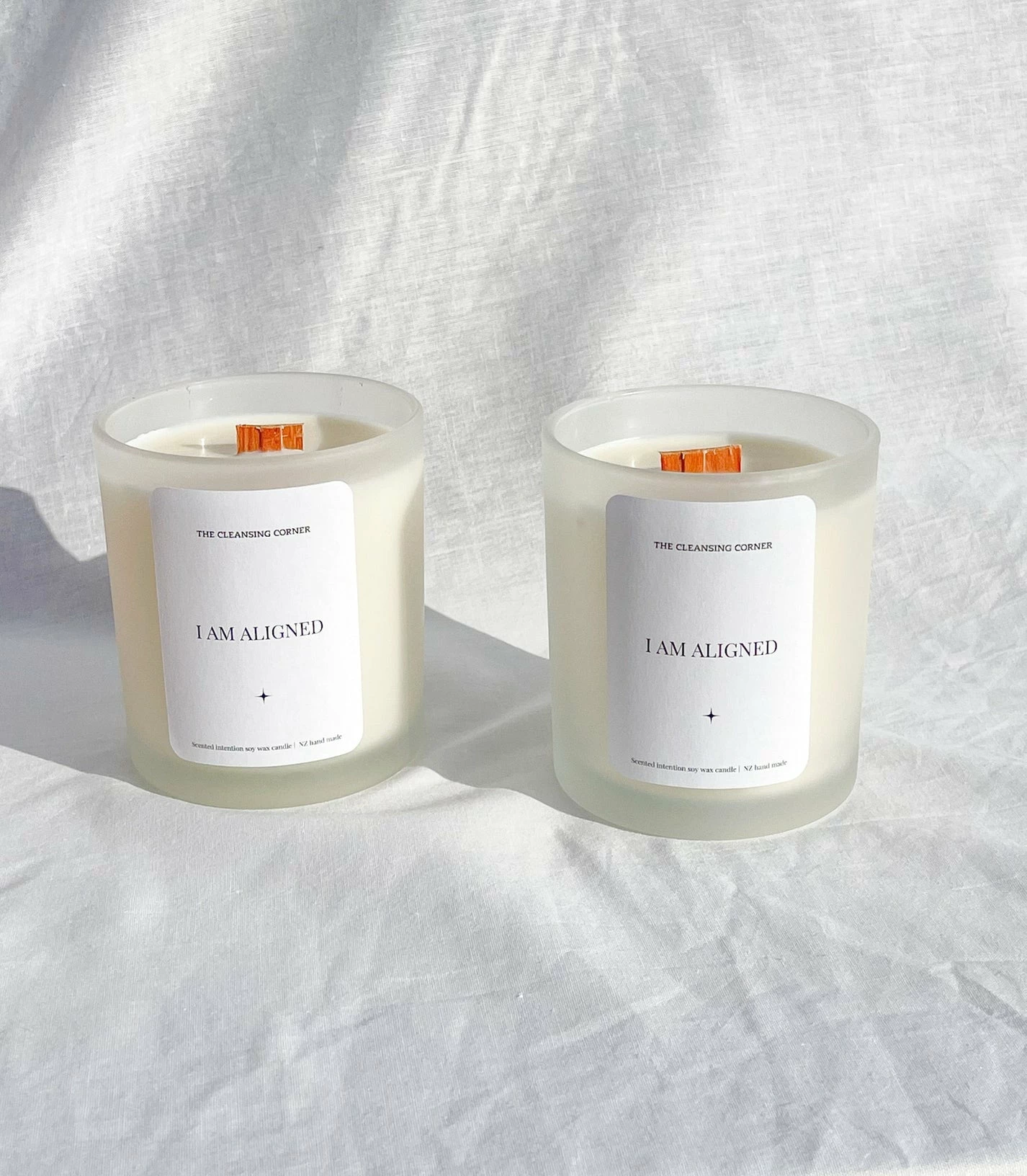 The I Am Aligned Candle from The Cleansing Corner has heady notes of jasmine and ylang nestled on a base of Tahitian vanilla and musk, divine!