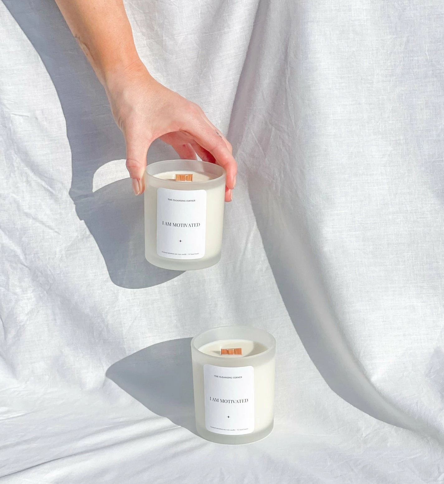 The Cleansing Corner I Am Motivated Affirmation Candle has strong top notes of strawberries and green apples and pears; middle notes of geranium and basil; bottom notes of oak and fresh greenery. Choose your Affirmation and amplify your intention with The Cleansing Corner Affirmation candle range. Made with a blend of natural vegan soy wax and infused with top quality scents, good vibes, and also made with a wooden wick (they sound like little fireplaces).
