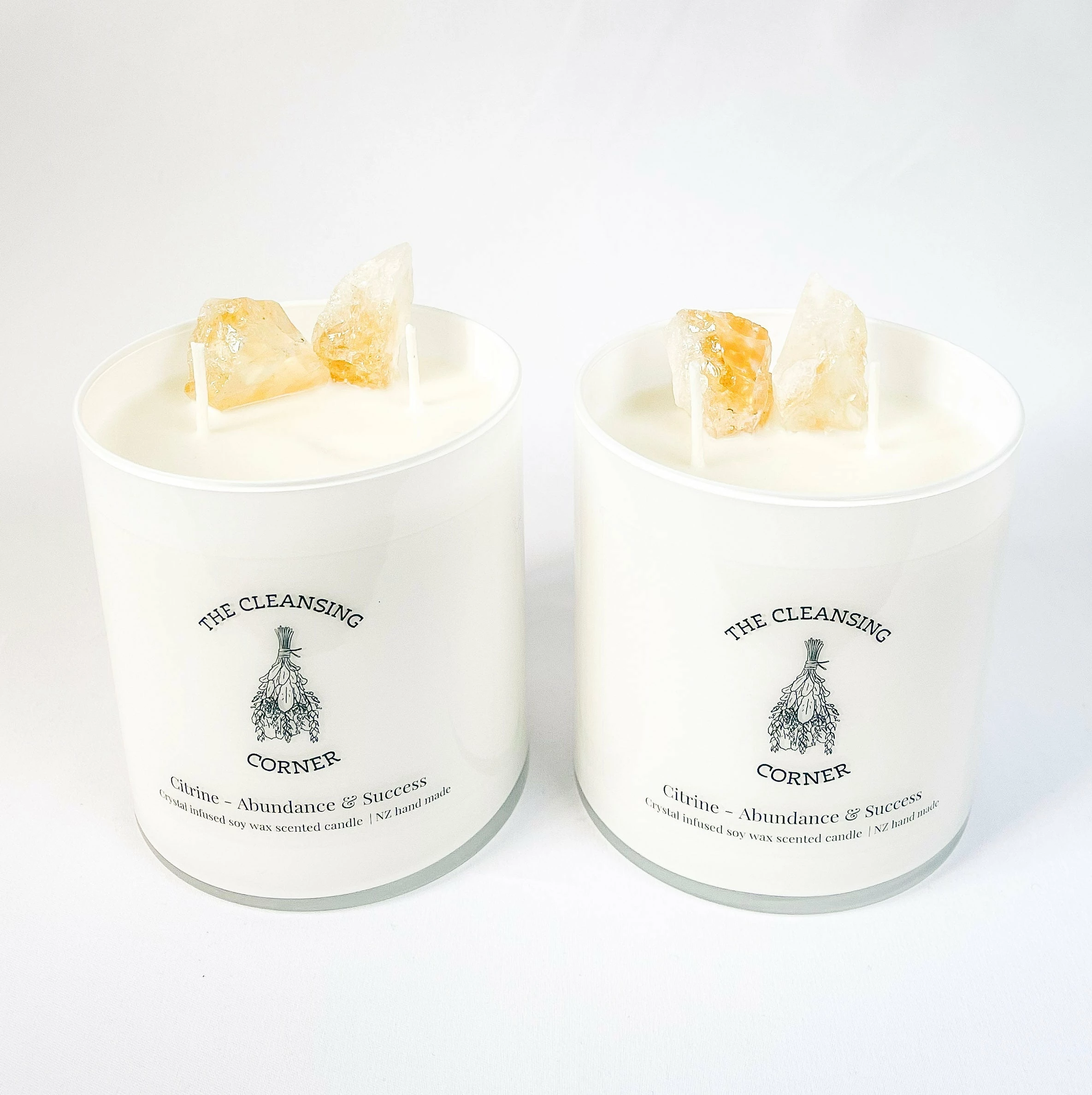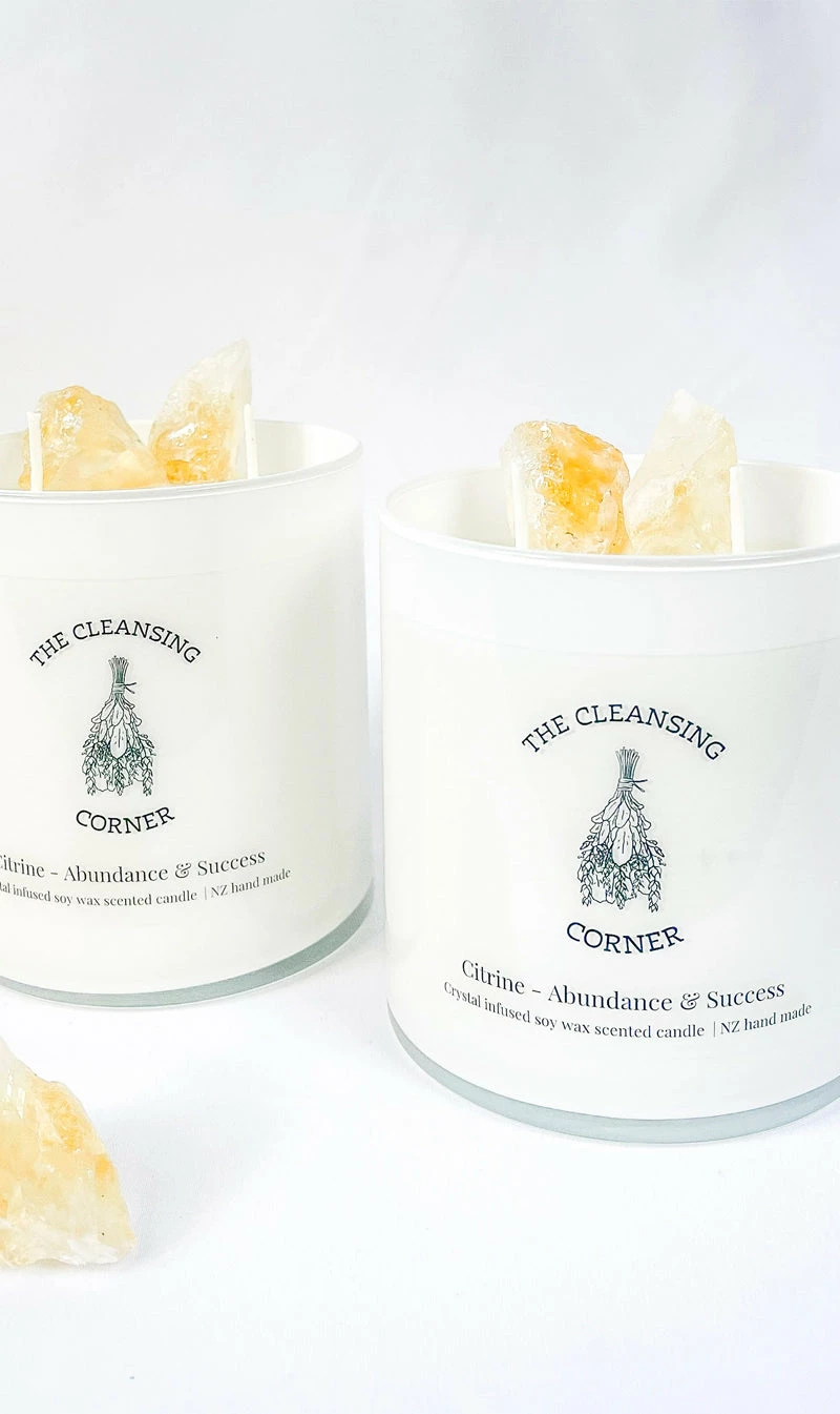 Create a space of high energy and an abundance of success, with the properties of Citrine Supported in a blend of natural soy wax. It opens the heart to unconditional love. Citrine energises every level of life.Â