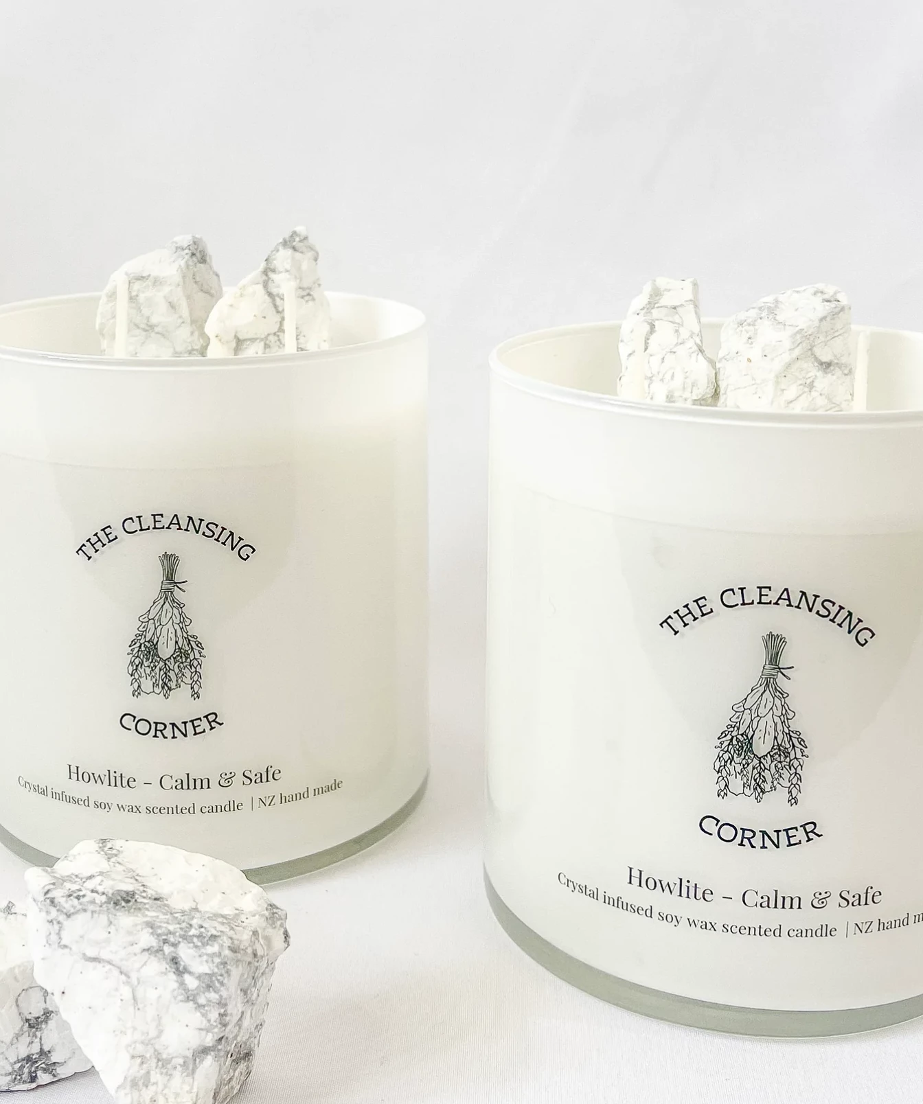 The Cleansing Corner Howlite Candle strengthens memory and stimulates the desire for knowledge and teaches patience. A calming stone, Howlite calms communication, facilitates awareness, and encourages emotional expression. Howlite balances calcium levels in the body.