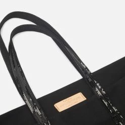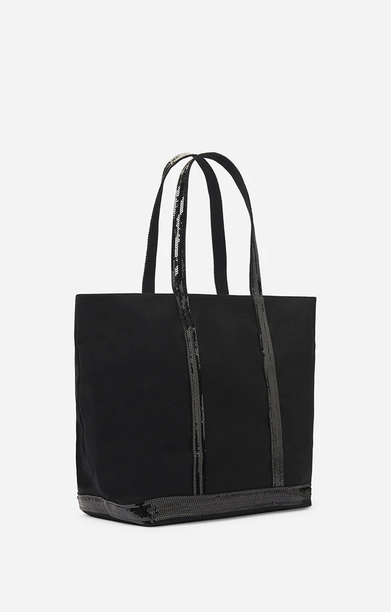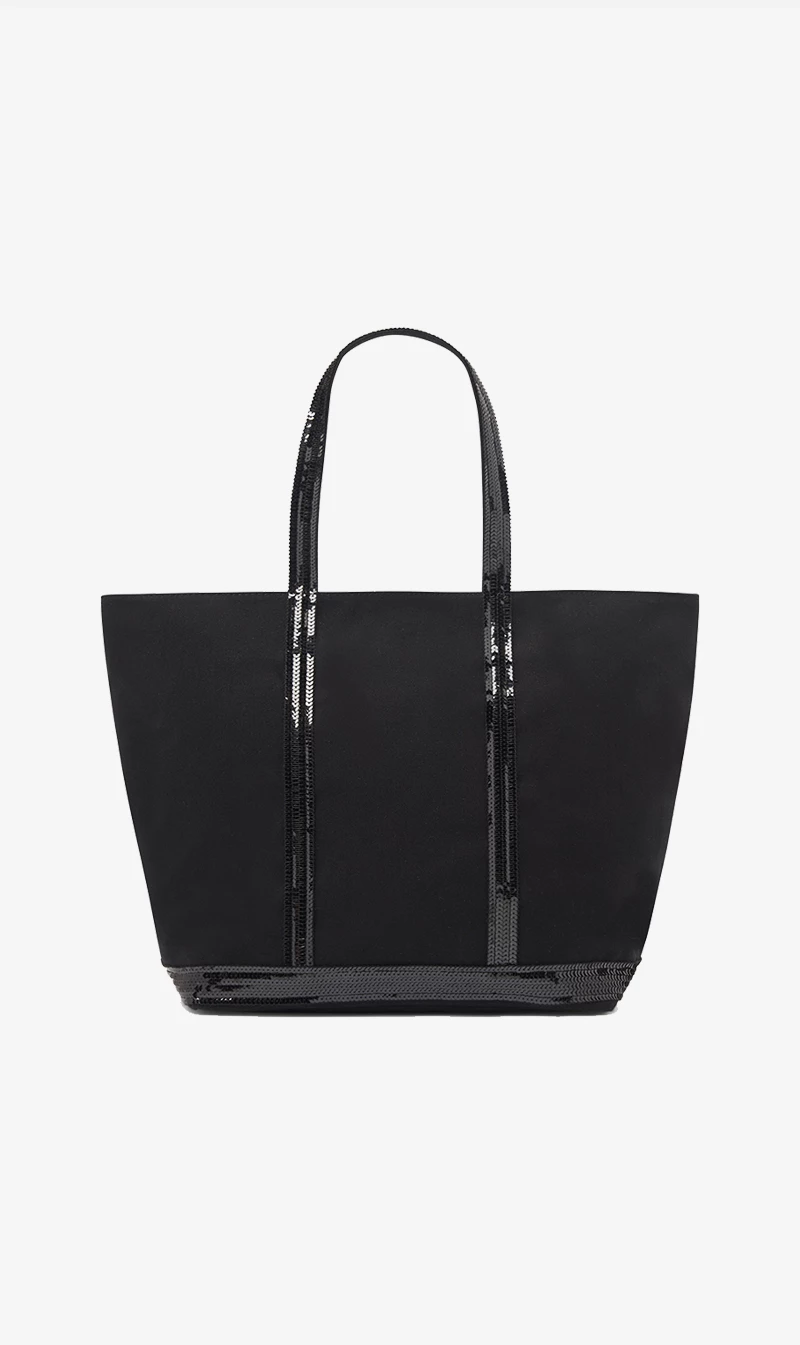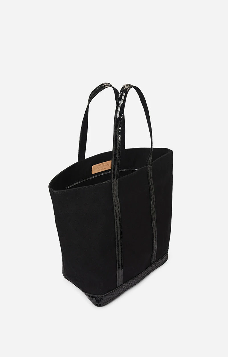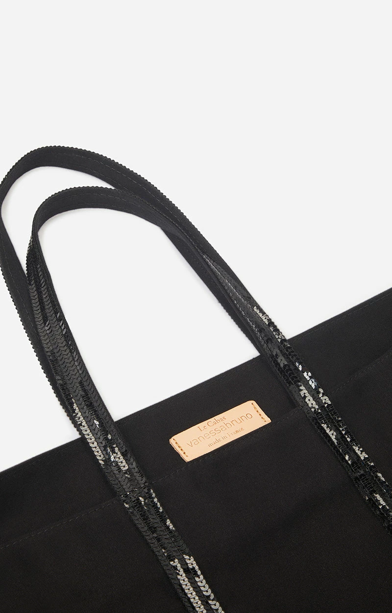 The Vanessa Bruno Cabas L Cabas L in Noir/Blanc is the most versatile model in the range and is designed to hold the essentials… and much more. Equipped with large handles that allow it to be carried on the shoulder, this accessory also has a zip. This ultra-resistant cotton canvas bag has stood the test of time and has become a Vanessa Bruno must-have. Enhanced with sequins, this item is made in our workshops located near Paris from locally sourced materials and is ideal for all women, from the student to the young mother through the businesswoman.