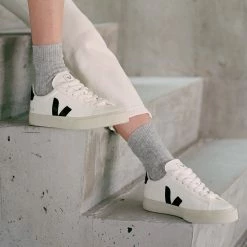 The Veja Campo Chromefree in White and Black is your new best friend! This classic, everyday sneaker – built for comfort and style. Featuring a black leather V finished with a contrasting rubber base and organic cotton lining.Â