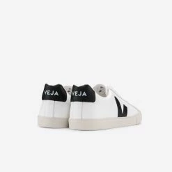 The Veja Esplar Logo Leather Sneakers in Extra White Black. The bovine leather comes from farms in Uruguay, a country known for its culture of animal husbandry and the quality of its leather. It is tanned in Brazil, respecting the REACH norms. Special attention is paid to water usage during the tanning process.