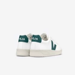 Ready for anything, and sustainably minded, the Veja V10 CWL is a go-anywhere sneaker in crisp white finished with forest green detailing. The V-10 CWL is made out of ecological and sustainable materials and features contrast toe covering, heel detail and signature Veja V. Crafted from CWL cotton that’s 54% bio-based, this material is a vegan alternative to leather and is a 100% organic cotton canvas, coated with P.U., corn starch and ricinus oil.