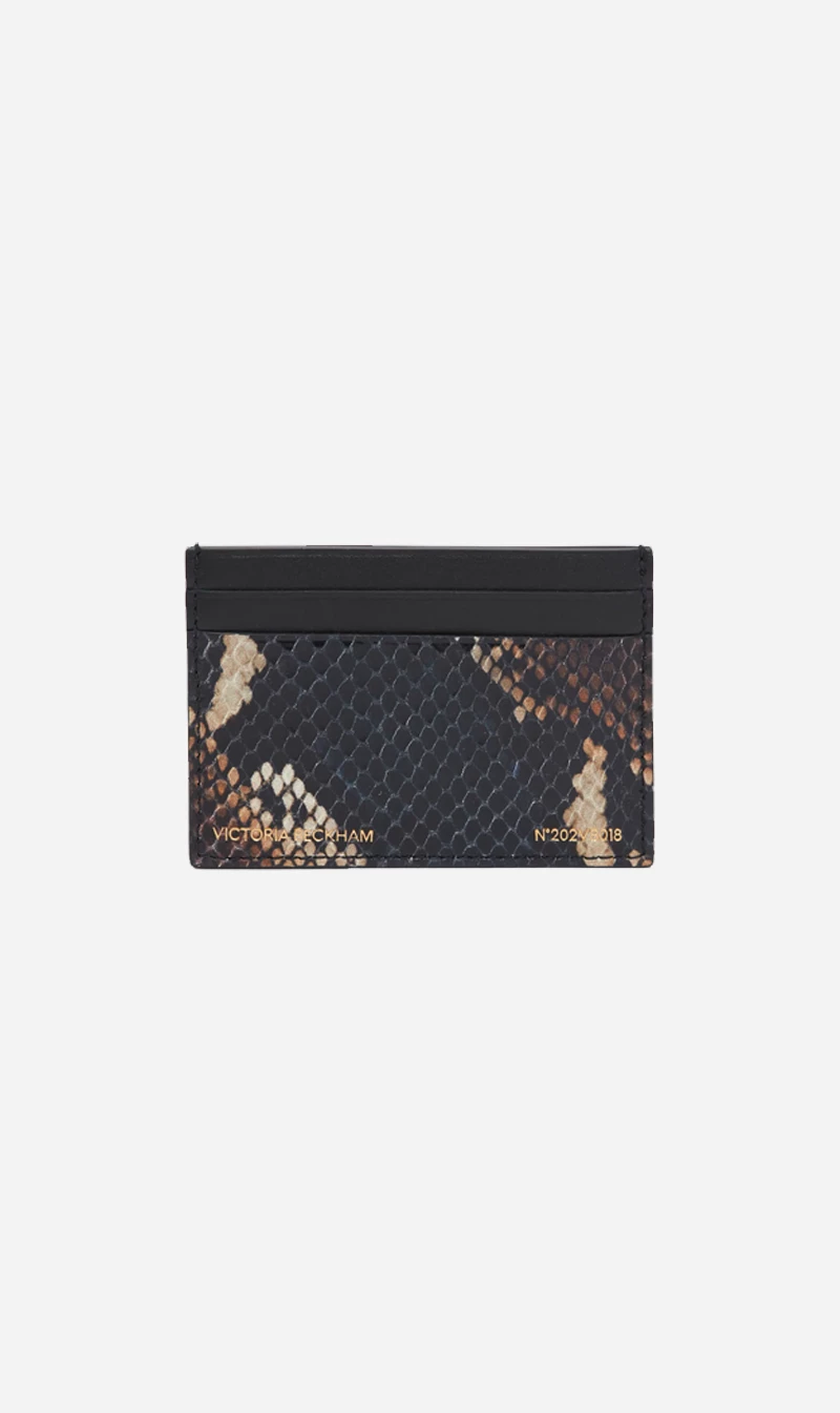 In a navy-brown snake print – a key motif for Victoria Beckham’s new season – the Card Holder combines vintage references with modern design details. Double-sided for practicality, it has a sleek design with four slots for your most-used cards, and a main compartment for receipts and money. The Card Holder is neatly finished with a signature gold-toned VB logo design.Â
