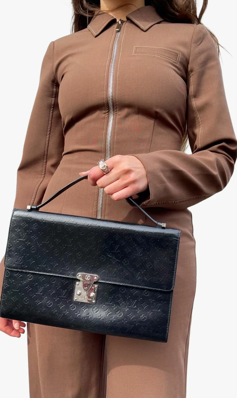 This Vintage Louis Vuitton clutch with handle is the perfect little black bag for any occasion!