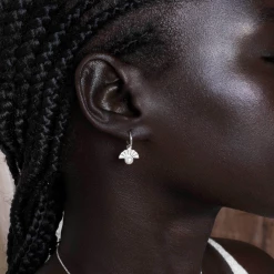 The Calypso Earring in sterling silver with freshwater pearls by Zoe And Morgan is a delicate earring with a statement pearl featuring a fan that is wrapped around with a rippled texture like the waves approaching the shore.