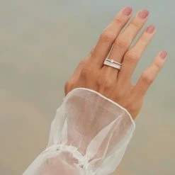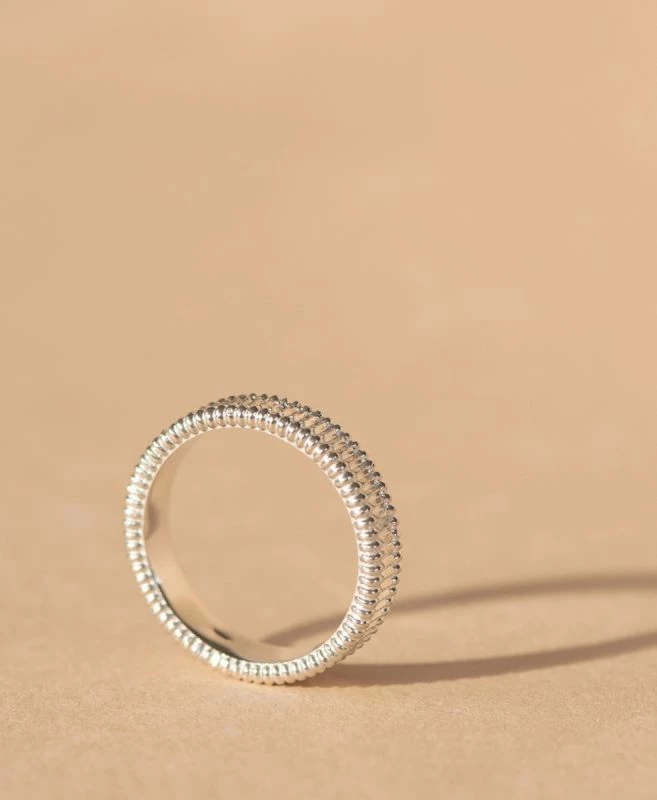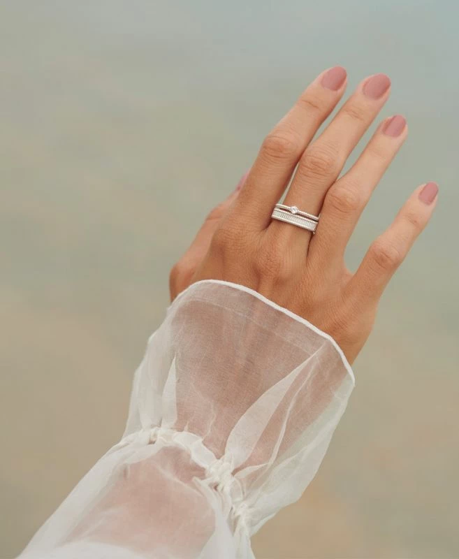 The Zoe & Morgan Connected Stacker Ring in 925 sterling Silver. Minimal and structured, the Connected stacker is a classic style that speaks to those looking for modern simplicity. Wear alone for a pared back look or pair with the Kina stacker for a pop of colour and contrast of shape.