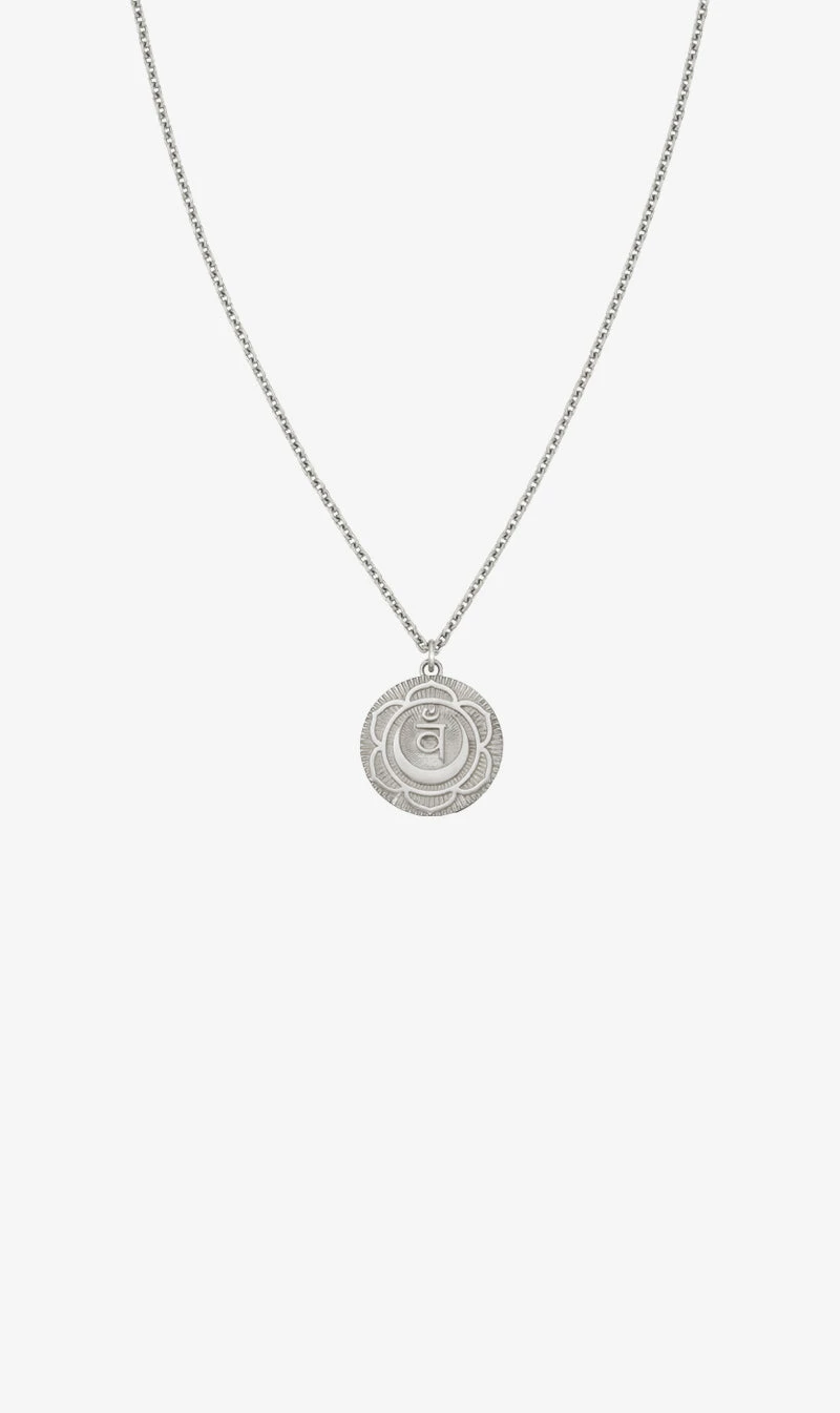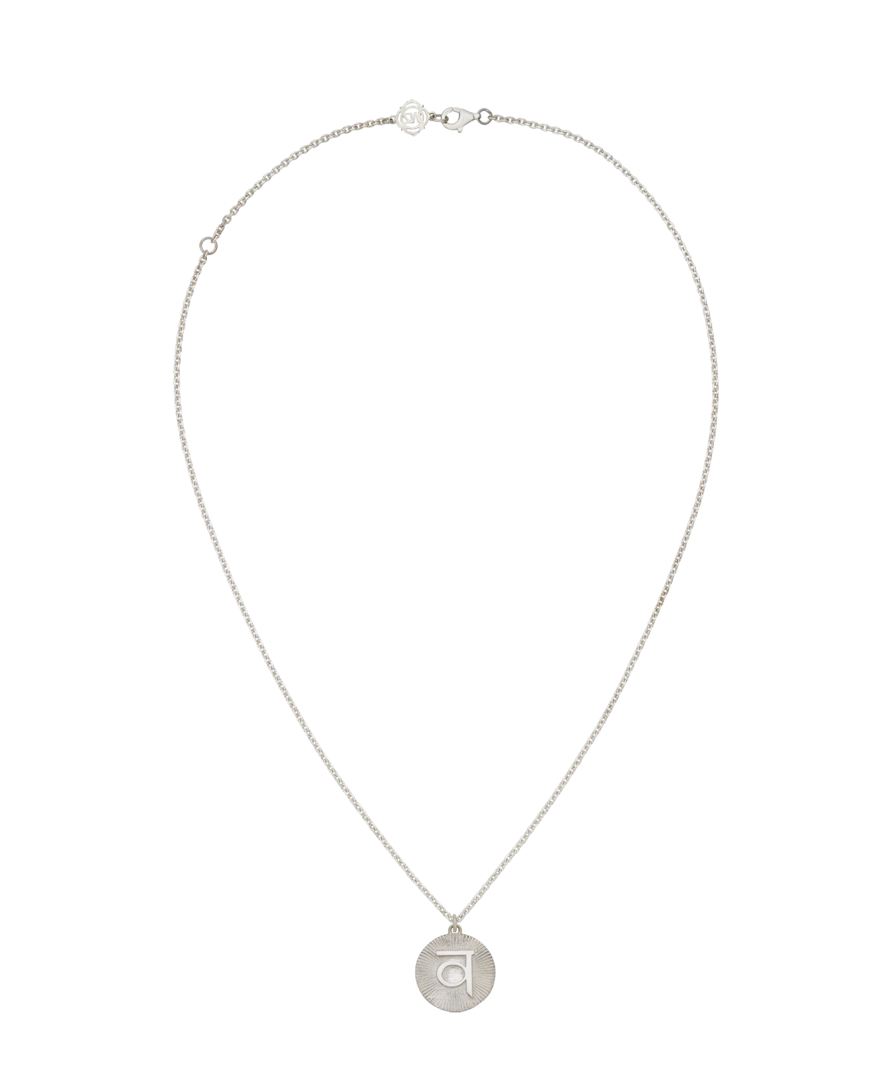 The Zoe & Morgan Creativity Svadhisthana Necklace in 925 Sterling Silver. Svadhisthana houses emotions, passions and pleasures, it is the source of creative energy. When this chakra is open it expands your creative potential. By honoring your body and expressing yourself creatively, you’re keeping the enegry wheels turning. The pendant sits beautifully on your heart space, with the Sanskrit symbol on the back, giving you two ways to wear this necklace.