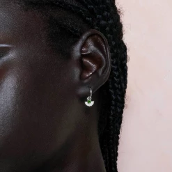 The Eos Earrings in sterling silver with chrome diopside by Zoe And Morgan are inspired by the time in the morning when you first see daylight. The delicate stone in the centre of the pendant signifies the sun rising, with the texture inspired by the night sky melting into the soft hues of the morning.