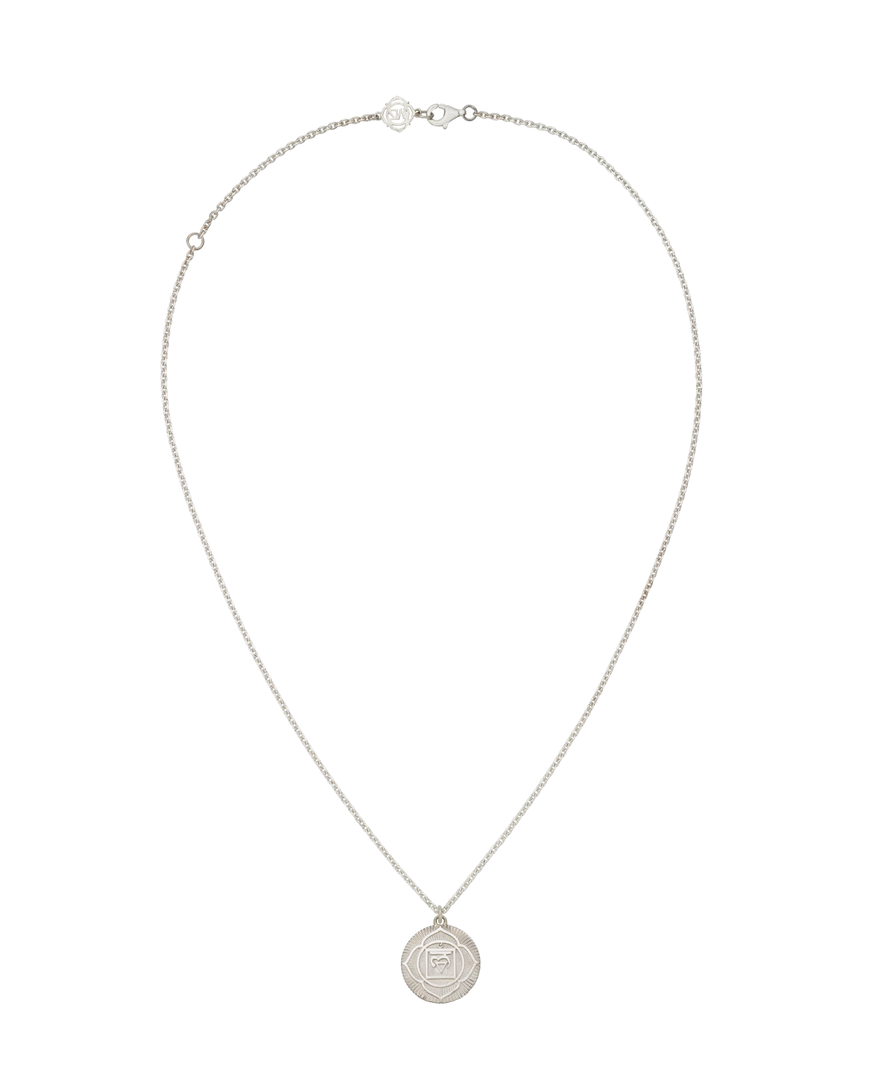 The Zoe & Morgan Grounding Muladhara Necklace in 925 Sterling Silver. Muladhara is the energetic field found at the base of our spine. It is here that we have all of our memories stored and is our source for feeling grounded within ourselves. This chakra allows us to tap into your strength and security, providing you with a solid foundation for life. The pendant sits beautifully on your heart space, with the Sanskrit symbol on the back, giving you two ways to wear this necklace.