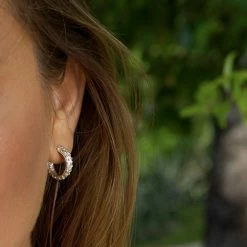 The Mini Komodo hoop in silver by Zoe and Morgan is inspired by a type of coral we discovered on Komodo Island in Indonesia. To reflect the shape and feel of the Komodo coral, this hoop is hand-made with subtle imperfections, expressing the natural organic shape of the coral with irregular dotted textures.