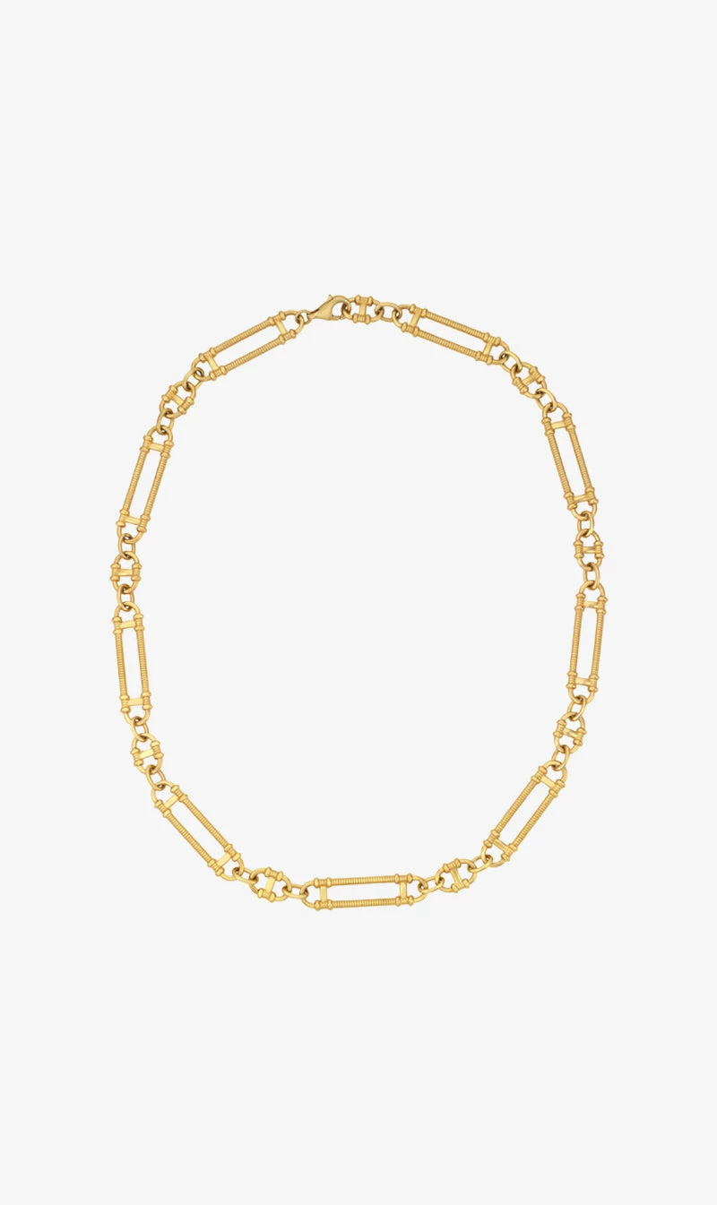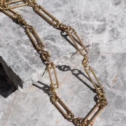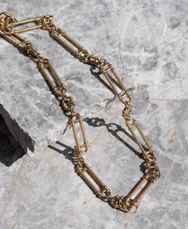 The Zoe & Morgan Prana Chain 50cm in 22K Gold Plated. Prana is hand assembled with articulated open-link chains. A nod to effortless 1970s style, the Prana chain is crafted for everyday wear. Worn as a piece or layered, she moves with freedom and ease. The word Prana comes from Hinduism, meaning life force. It is the energy that flows through all beings, the movement of this chain symbolic to our connection to this force.