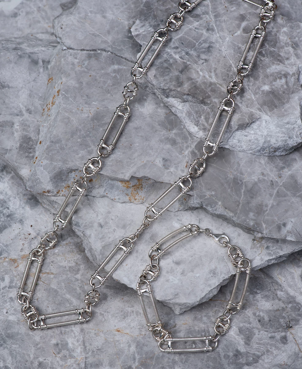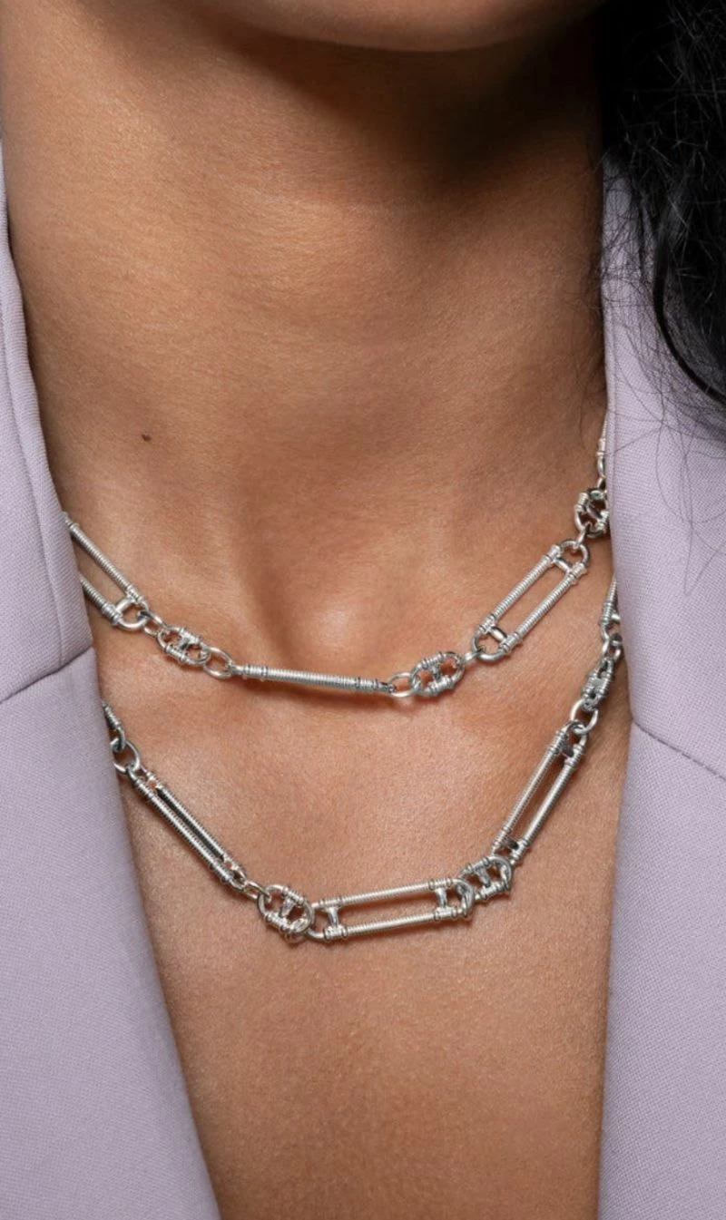 Prana Chain in Silver from Zoe and Morgan is hand assembled with articulated open-link chains.